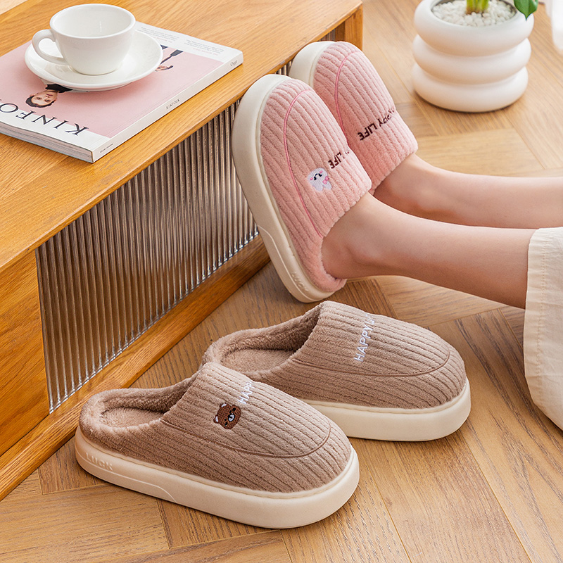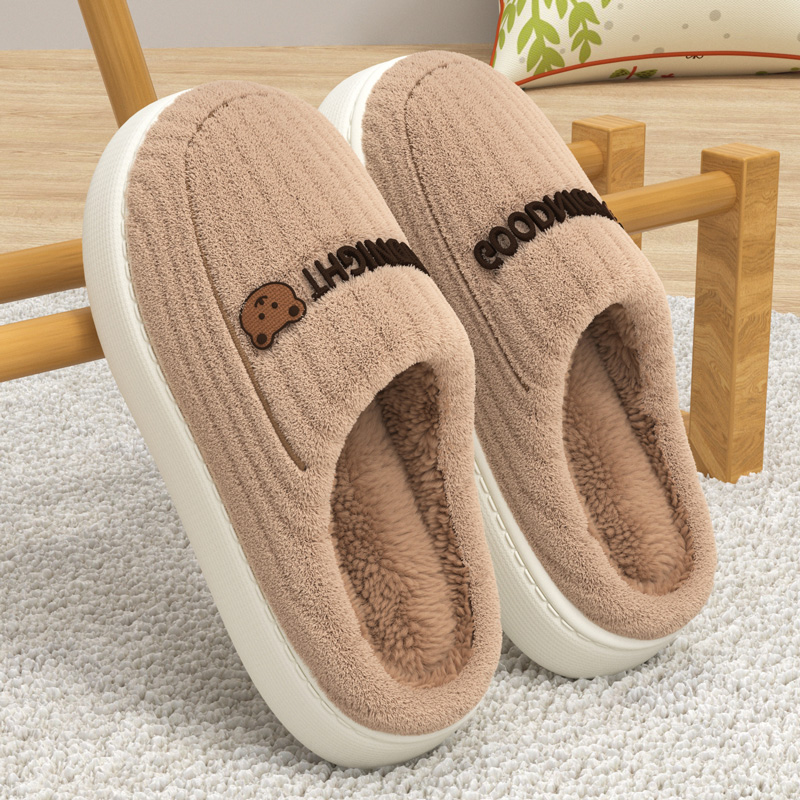 家居室内厚底防滑情侣家用保暖加绒加厚毛毛拖鞋 秋冬季 棉拖鞋 男士