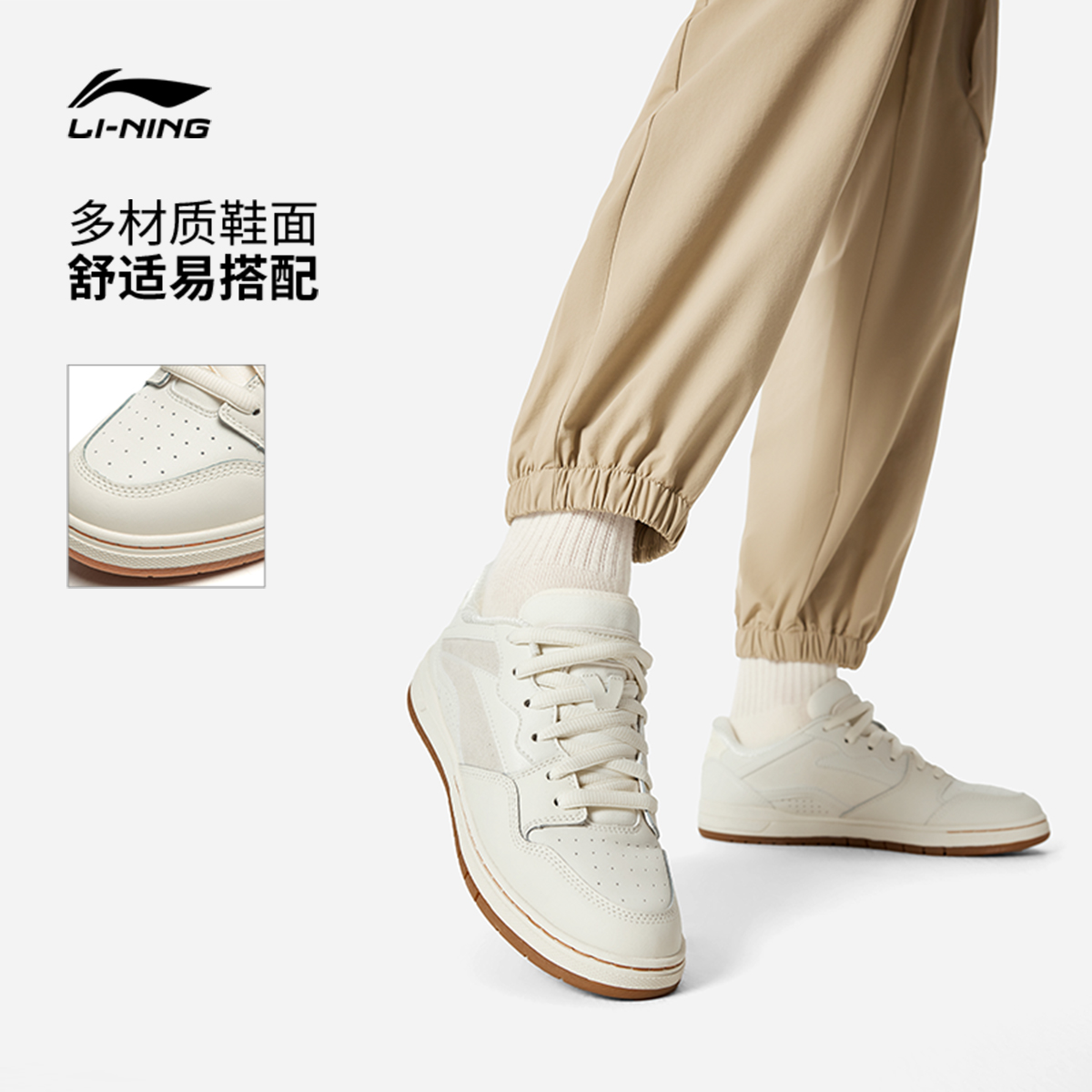 秋季 男款 复古百搭黑色休闲鞋 情侣白色运动鞋 李宁月白2 女鞋 板鞋