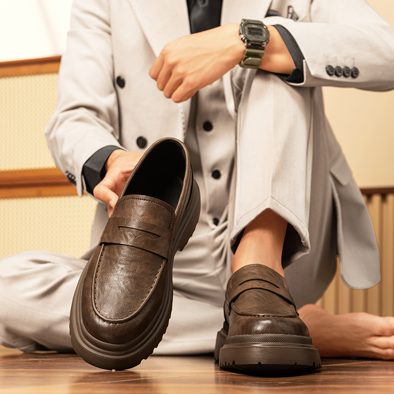 宽脚大头内增高结婚新郎休闲鞋 真皮商务正装 棕色 皮鞋 花花公子男士