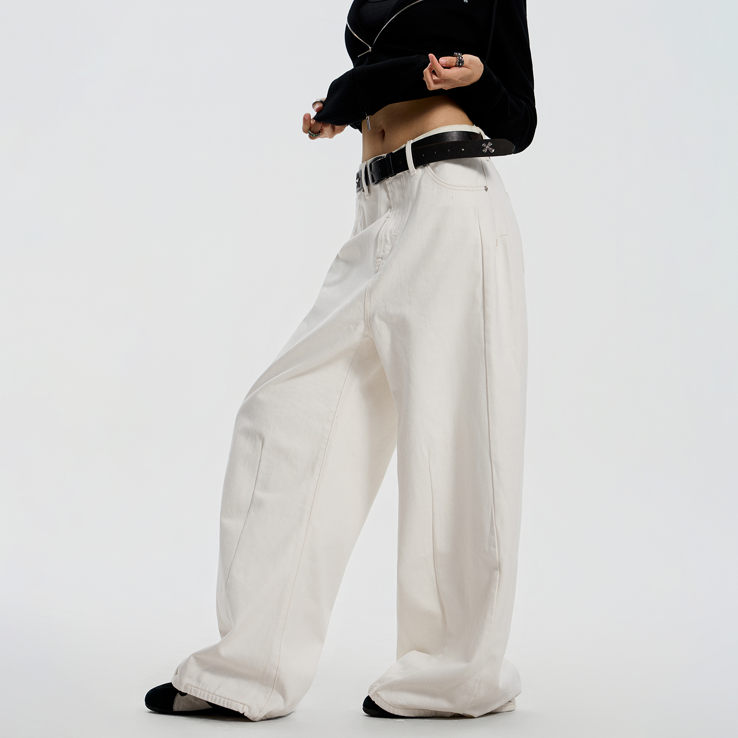 新款 垂感直筒长裤 简约基础款 褶皱拖地情侣牛仔裤 Achock官方店