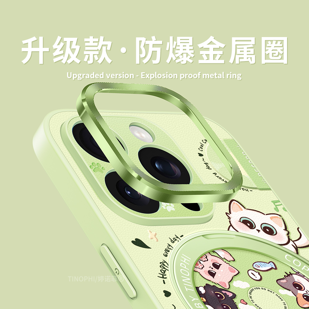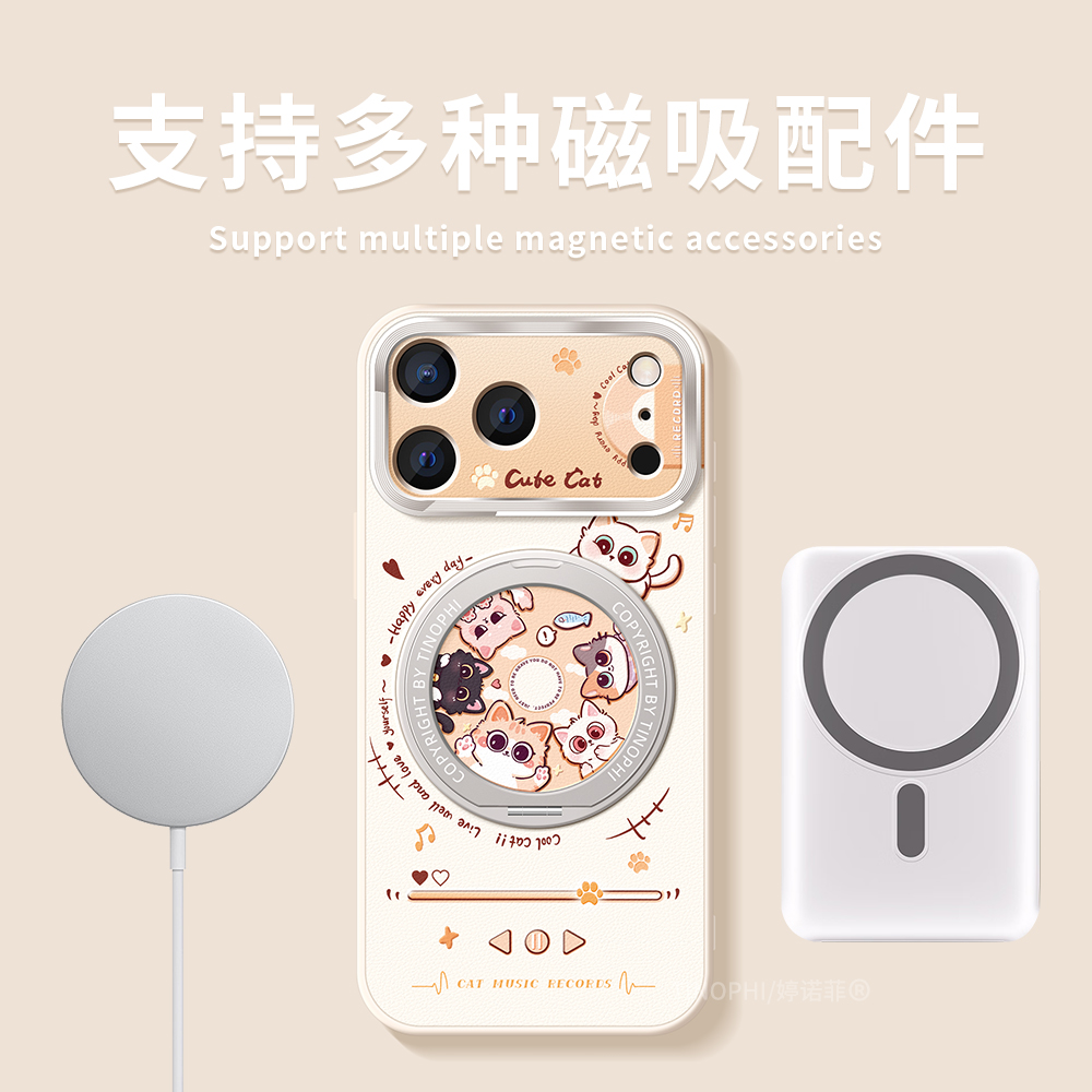适用苹果17promax手机壳新款 猫咪磨砂软外壳 iphone17保护套全包magsafe磁吸带支架17air防摔金属圈17por个性