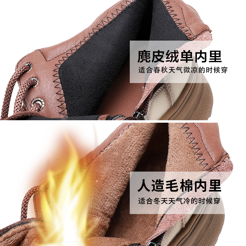 棉靴女棉靴高帮皮鞋 软底真皮短靴秋冬厚底马丁靴2025新款 防滑大码