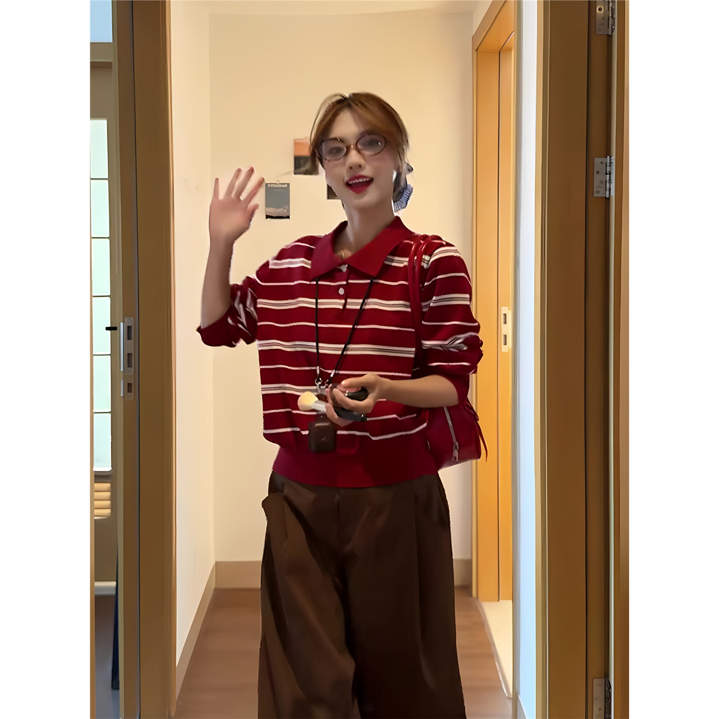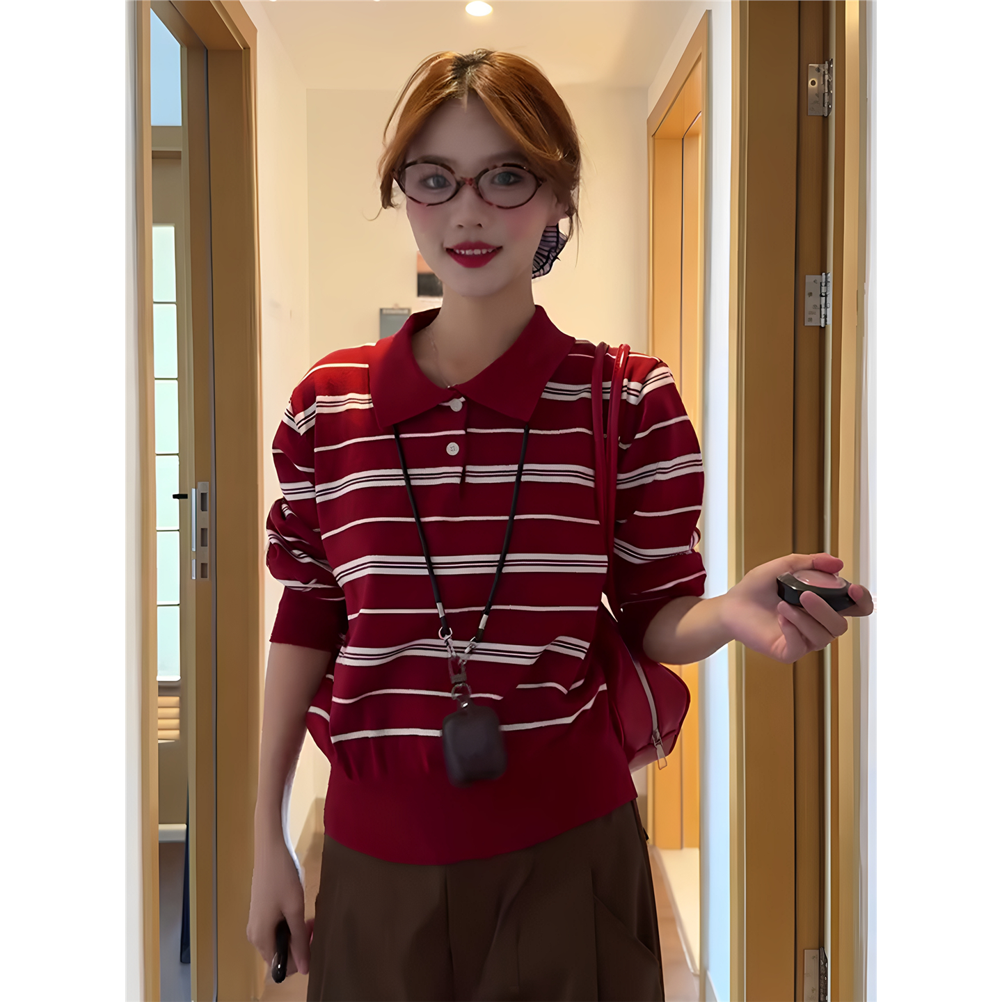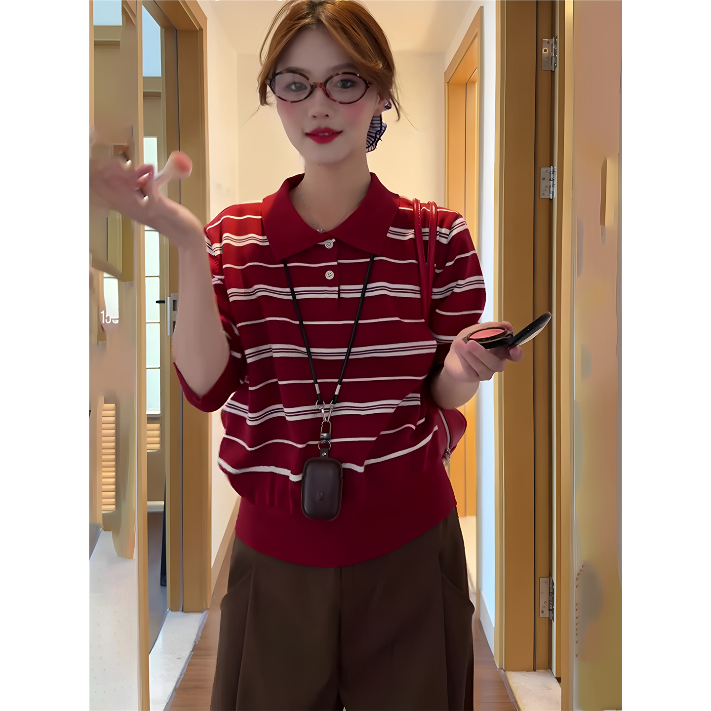 针织衫 条纹短袖 长袖 开衫 毛衣外套 RARN2025秋装 两件套圆领修身 新款