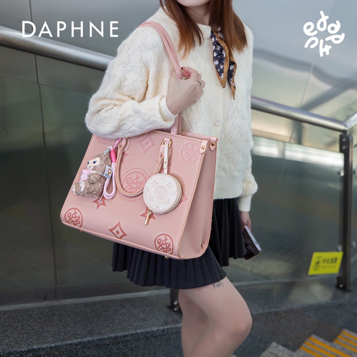 达芙妮粉萌压纹萌熊双子包大容量托特包单肩斜跨包包 买一得二