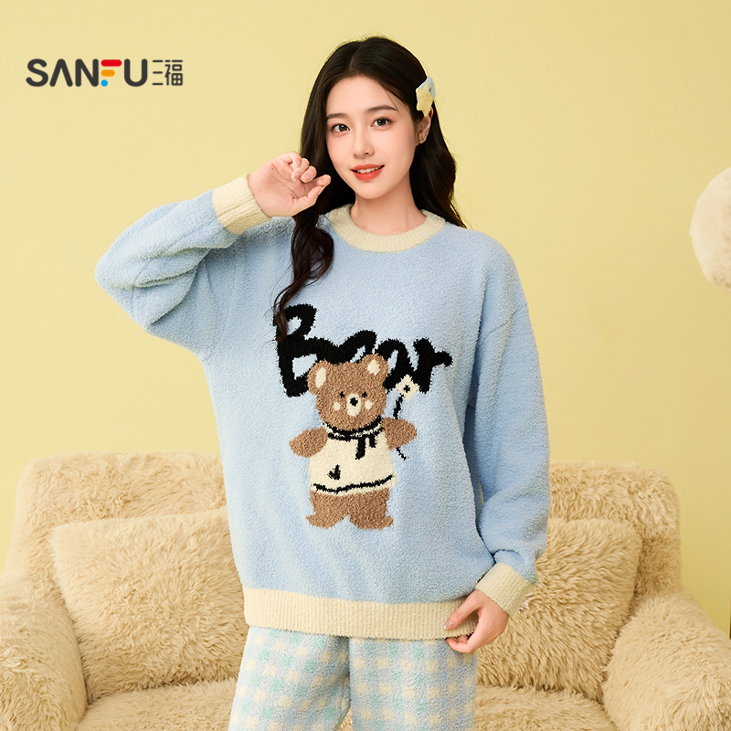 家居服套装 都市丽人女士长袖 睡衣纯棉卡通可爱小熊2025年春秋新款