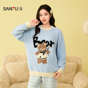 可外穿冬季 雅鹿珊瑚绒女睡衣大码 加绒加厚保暖家居服套装 新款 长袖