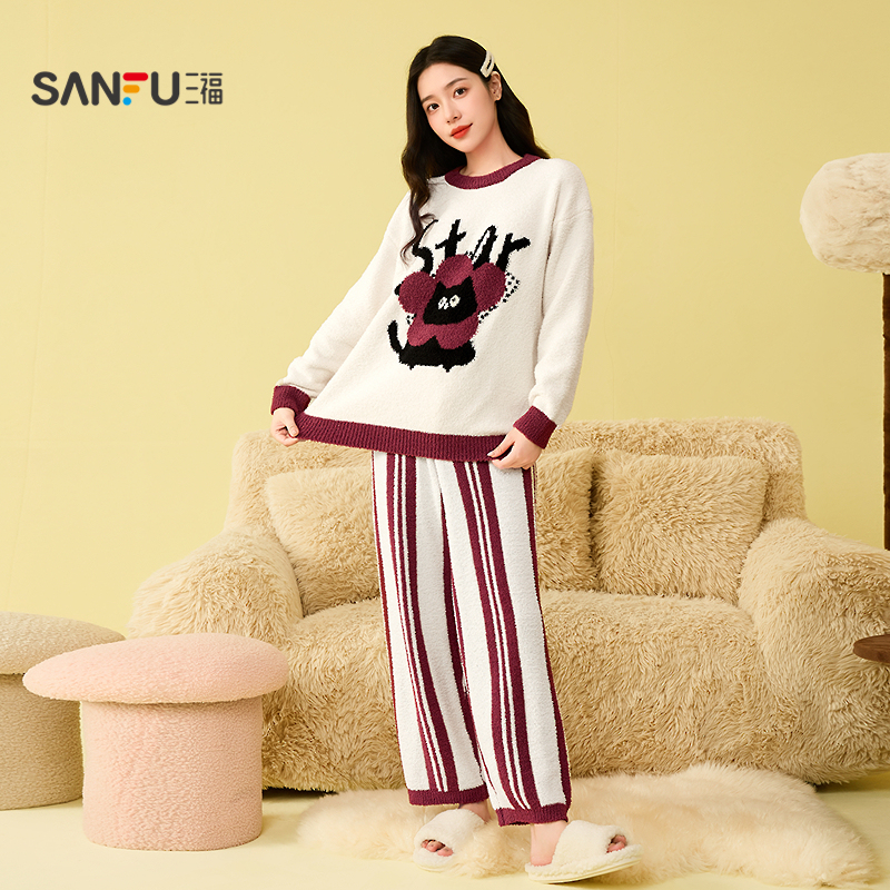 芬腾睡衣女春秋休闲宽松大码 清仓女士长袖 少女家居服套装 特价