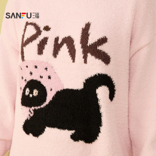 可爱卡通家居服套装 长袖 带胸垫 2025新款 猫人纯棉睡衣女士春秋冬季