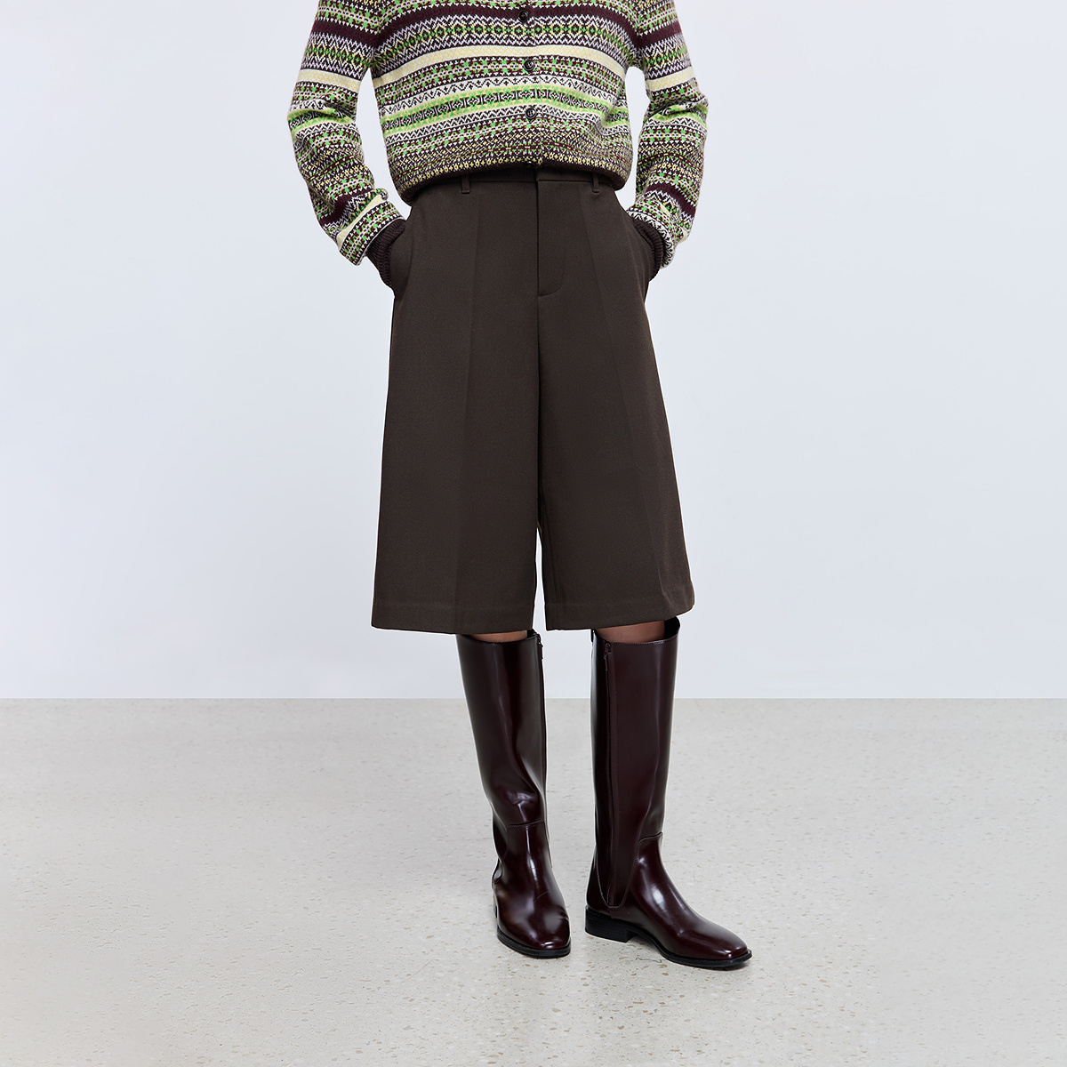 女 休闲裤 LILY2025冬新款 复古简约纯色加绒宽松休闲通勤A字五分裤