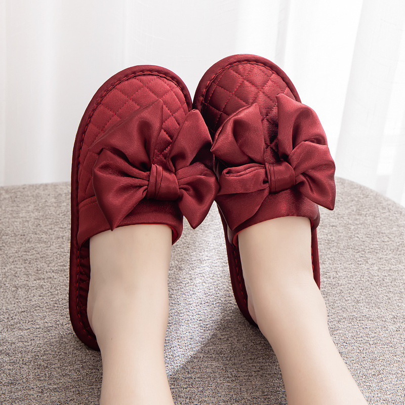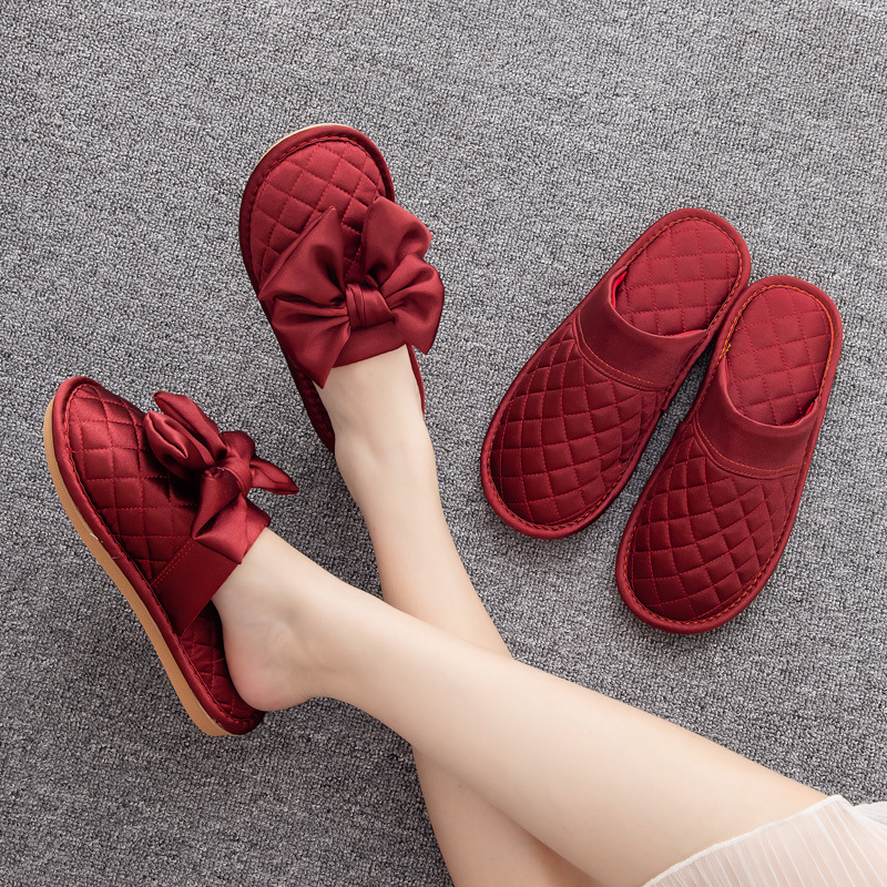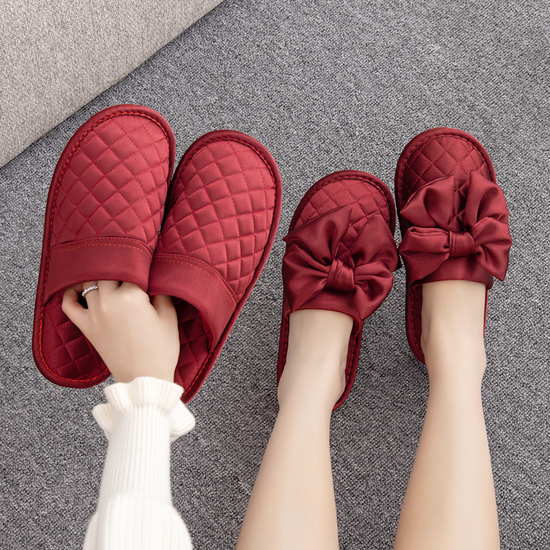 高档红色新娘结婚棉拖鞋 室内春秋婚礼情侣本命年女棉拖简约保暖鞋