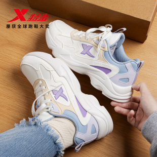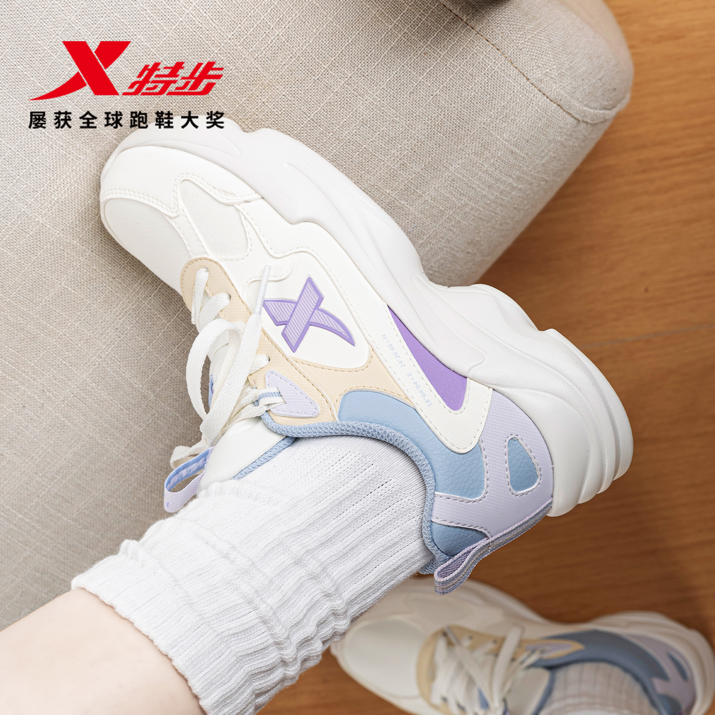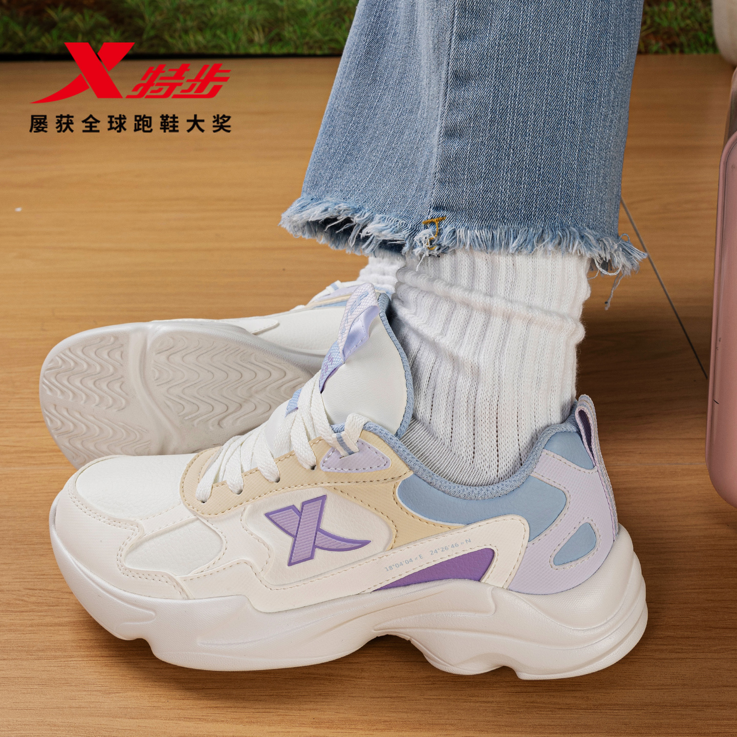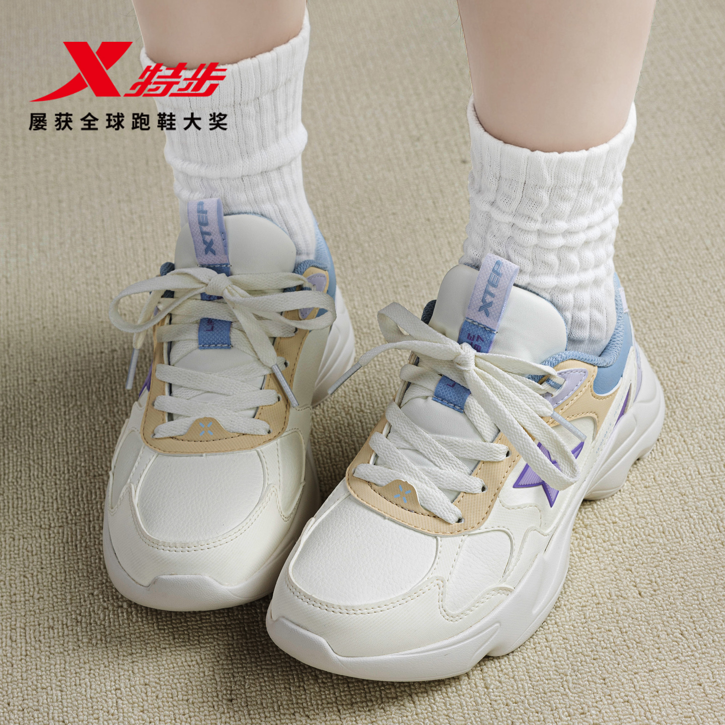 休闲鞋 女士轻便软底学生老爹鞋 子女款 皮面防水运动鞋 冬季 特步女鞋