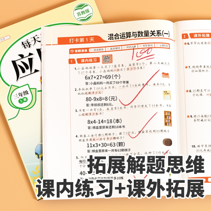 苏教版 数学应用题每天10道强化训练一年级二年级上三四五六年级上册小学应用题分类详解数学思维训练题口算计算题天天练专项练习册