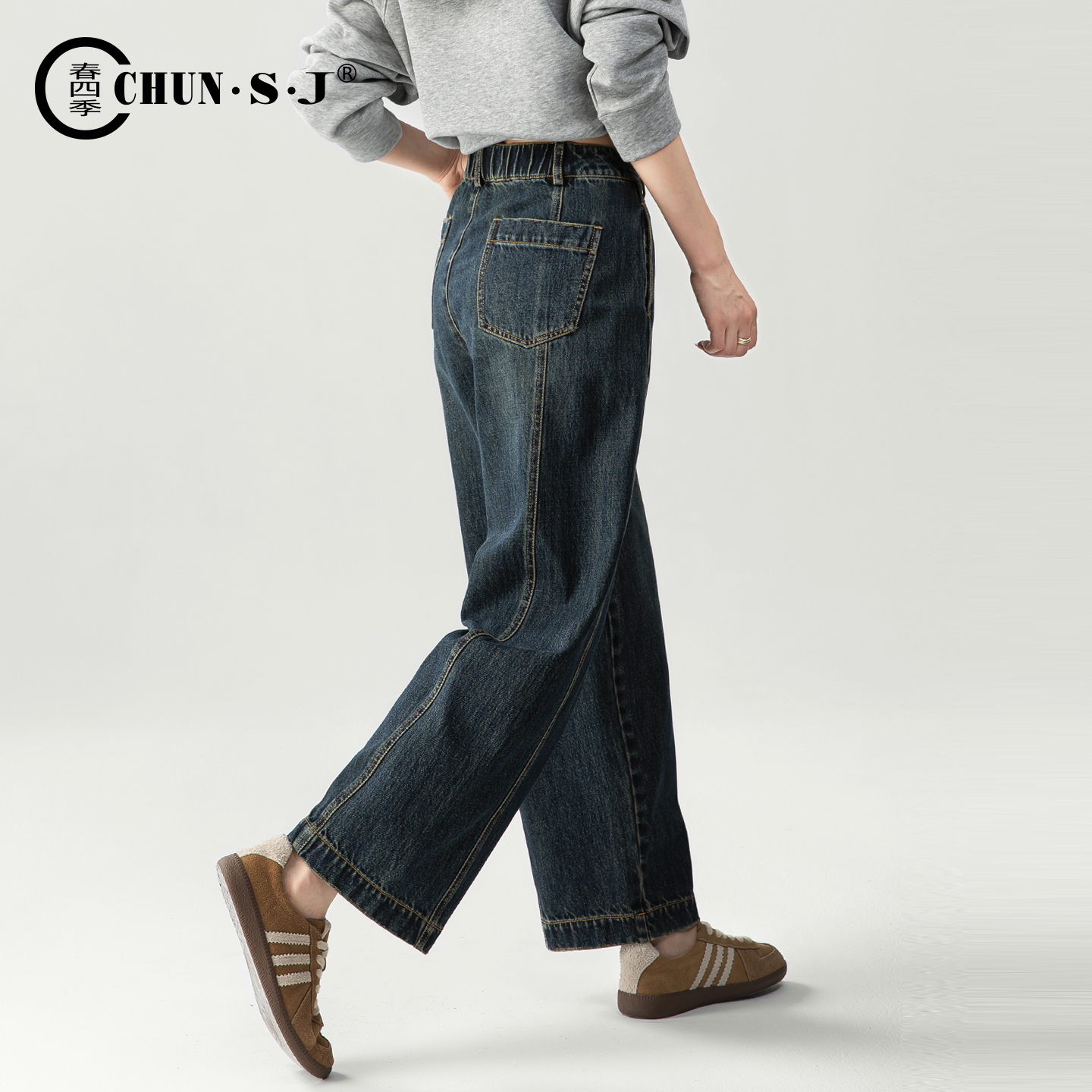 原色直筒休闲裤 女MOFAN摩凡2025秋款 显瘦 高腰阔腿牛仔裤 都市时尚