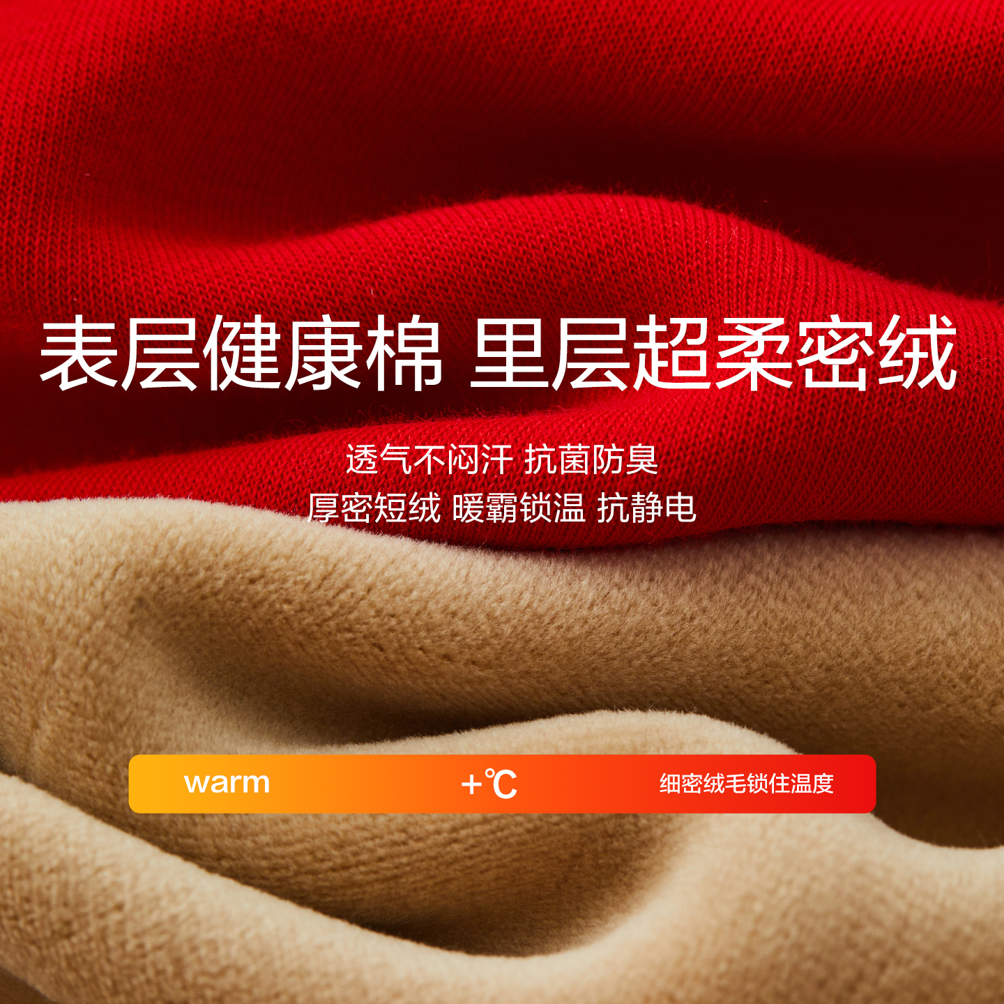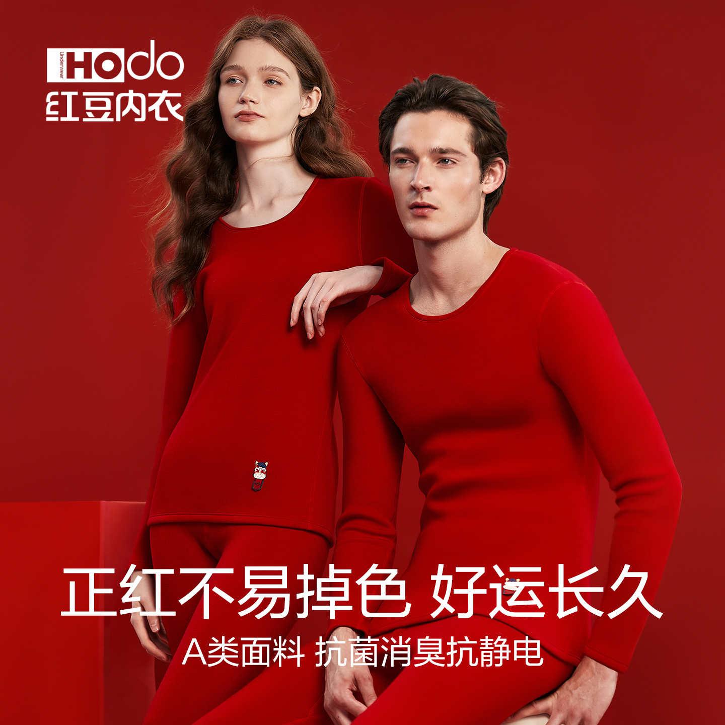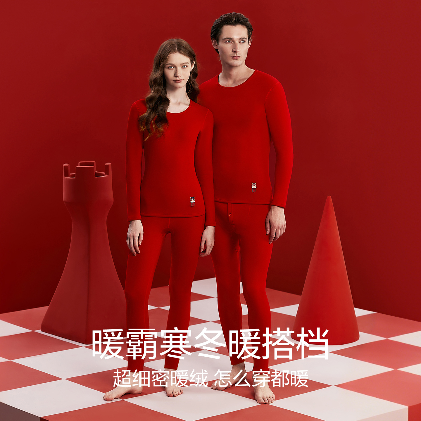 红豆情侣红色加绒加厚保暖内衣本命年男女士马年限定秋衣秋裤 套装