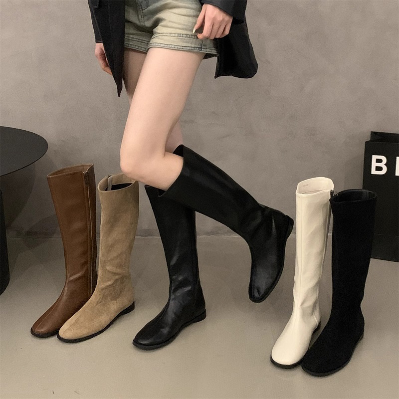 复古平底靴长筒靴女鞋 简约百搭骑士靴长靴春秋单靴 2025年秋冬新款