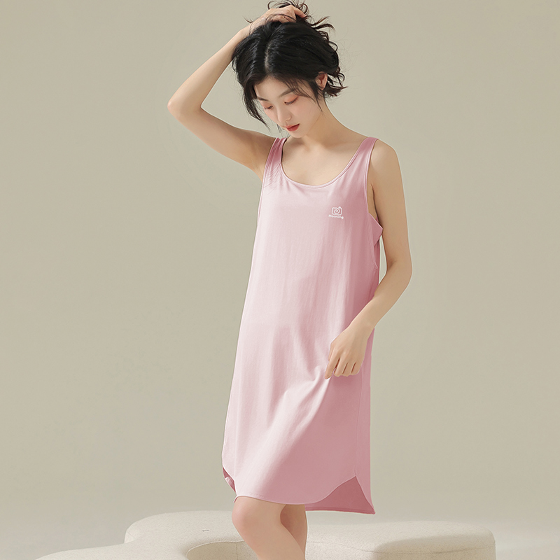 蕉内棉棉300Sleep女款 女士吊带睡裙 睡衣带杯带胸垫莫代尔冰丝短袖