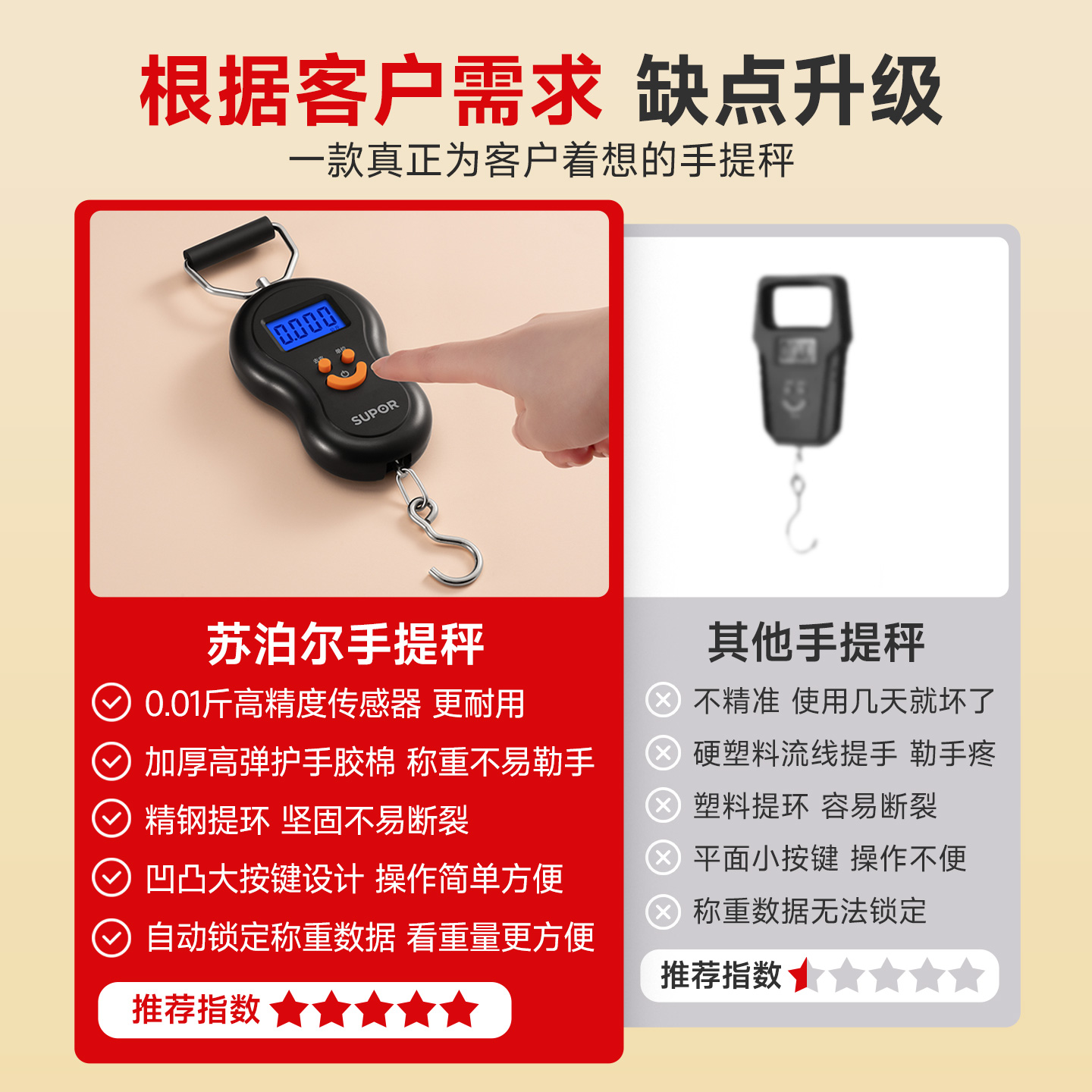 苏泊尔手提电子秤高精度便携式 弹簧秤家用买菜称鱼器行李秤挂钩秤
