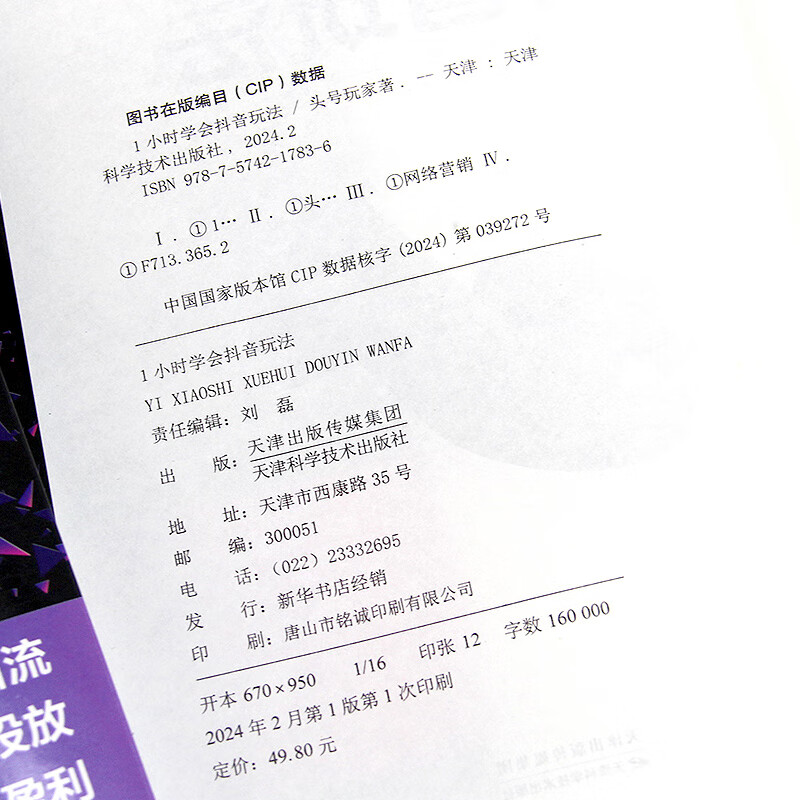 1小时学会抖音玩法新手小白入门打造账号创意文案拍摄技巧引流涨粉主播养成直播精准复盘高效运营爆品打造抖音电商运营书籍
