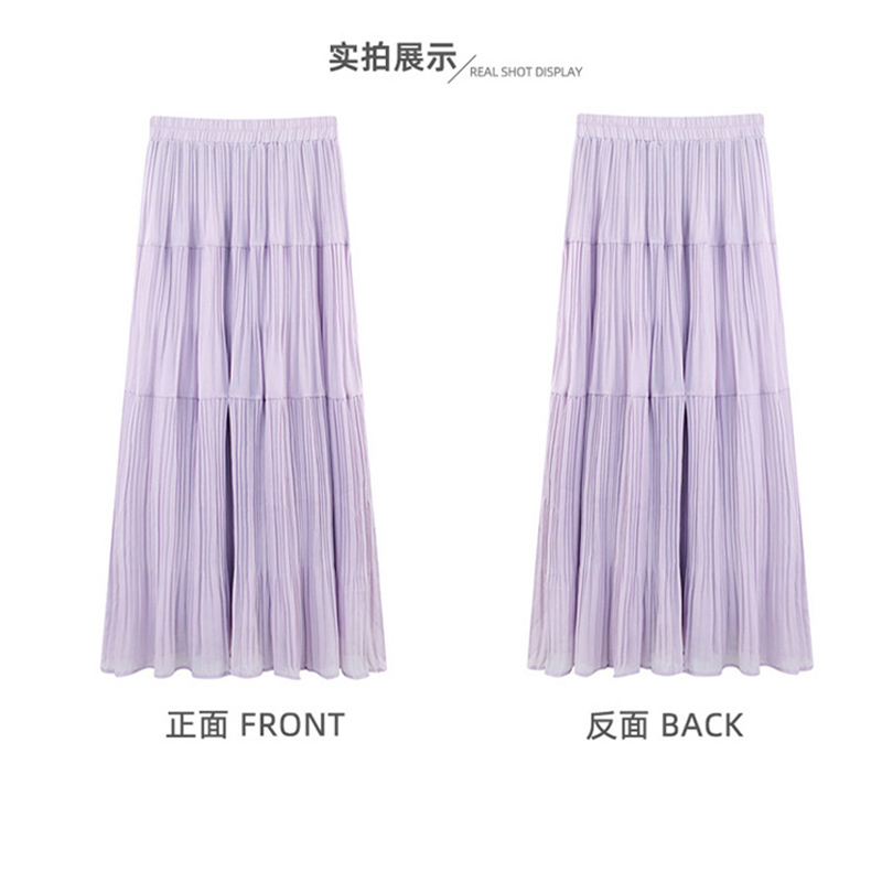 紫色半身裙女春秋2025新款 高腰大摆裙百褶皱a字伞裙蛋糕夏中长裙
