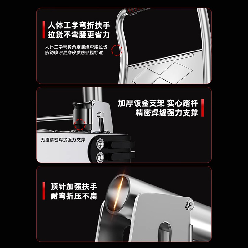 钢板小推车拉货手拉车搬运车家用平板车便携拖车折叠小拉车手推车