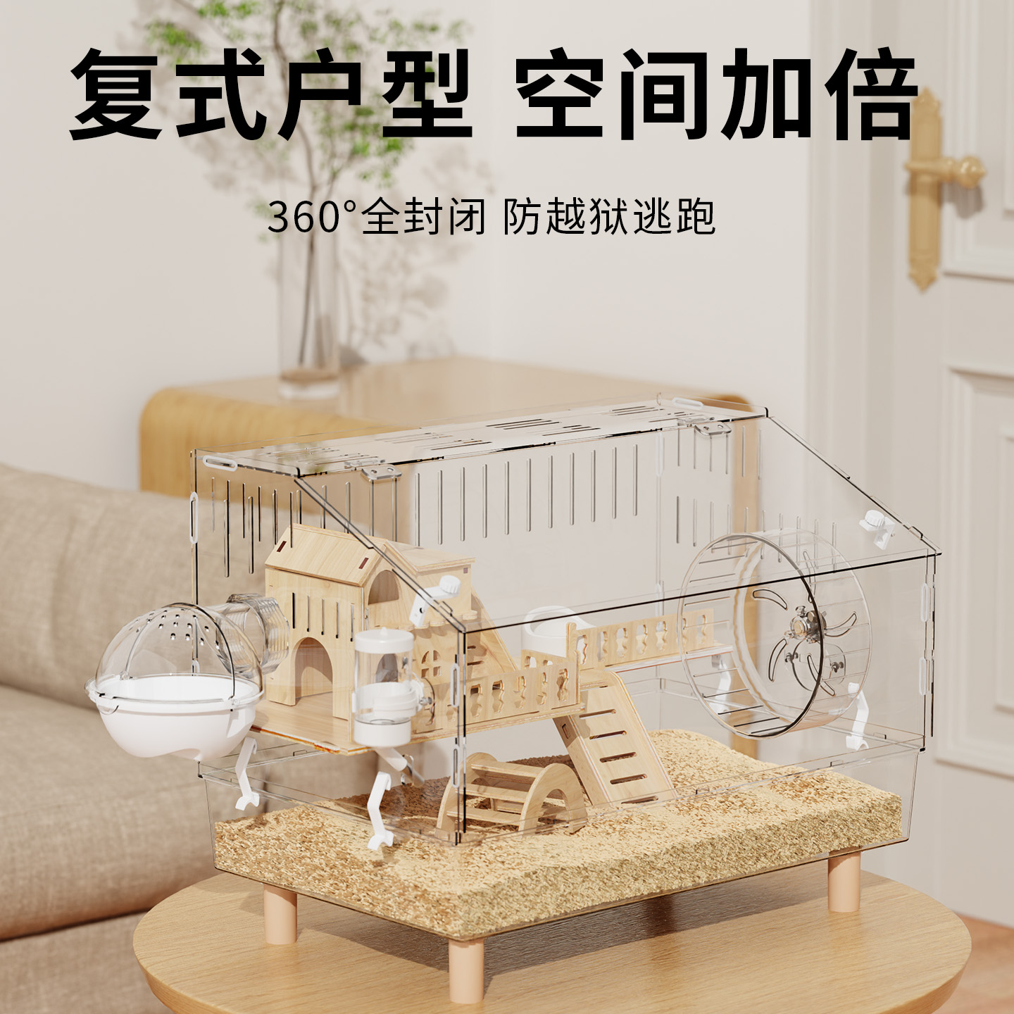 仓鼠笼子豪华别墅金丝熊超大便宜大 亚克力透明二层防啃咬饲养箱