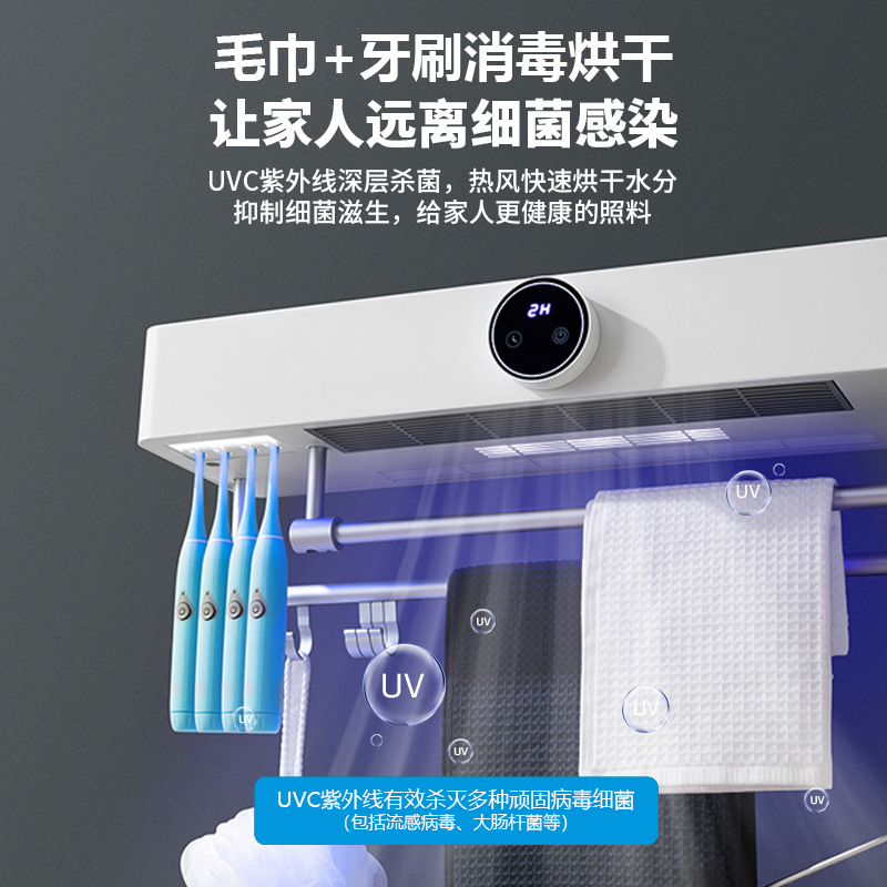 riodC智能电热毛巾架家用免打孔紫外线杀菌牙刷消毒器自动烘干架