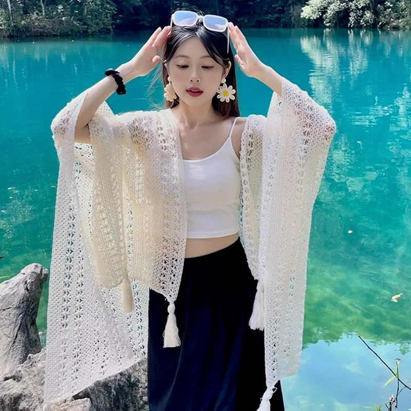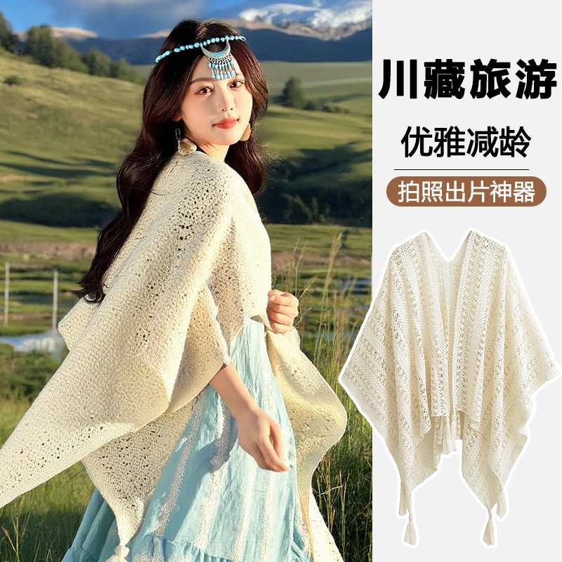 川西旅游出片外搭披肩多用围巾 夏季 民族度假风针织开衫 女2025新款
