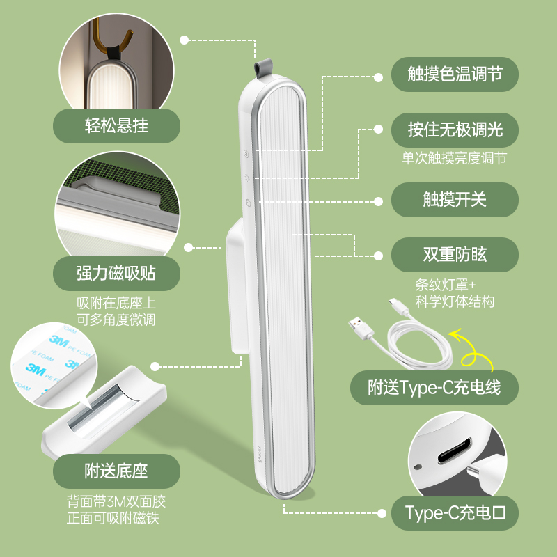 公牛磁吸护眼台灯大学生宿舍充电书桌吸顶学习专用寝室照明酷毙灯