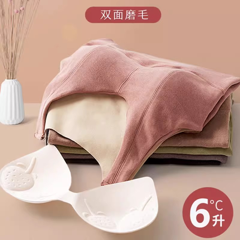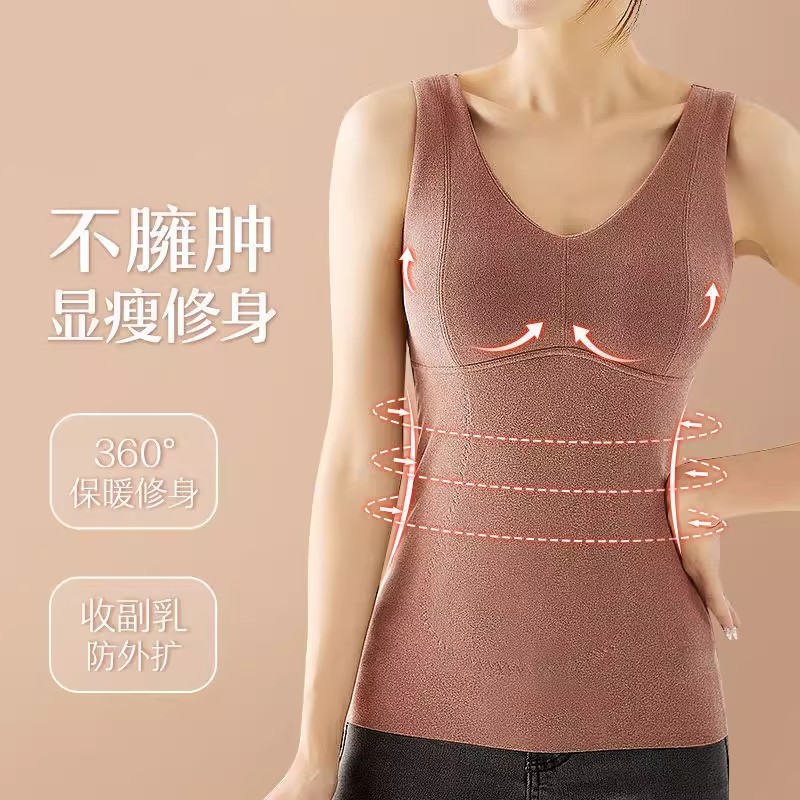 德绒加厚保暖背心女带胸垫无痕贴片加绒秋冬季 打底上衣内衣女文胸