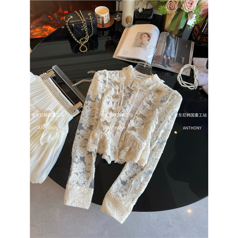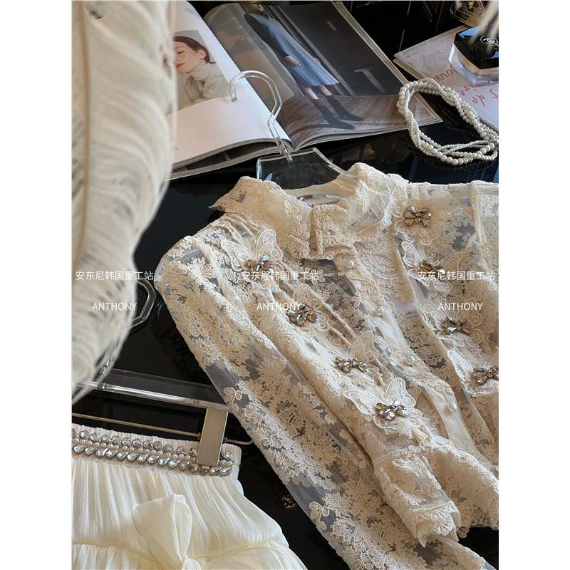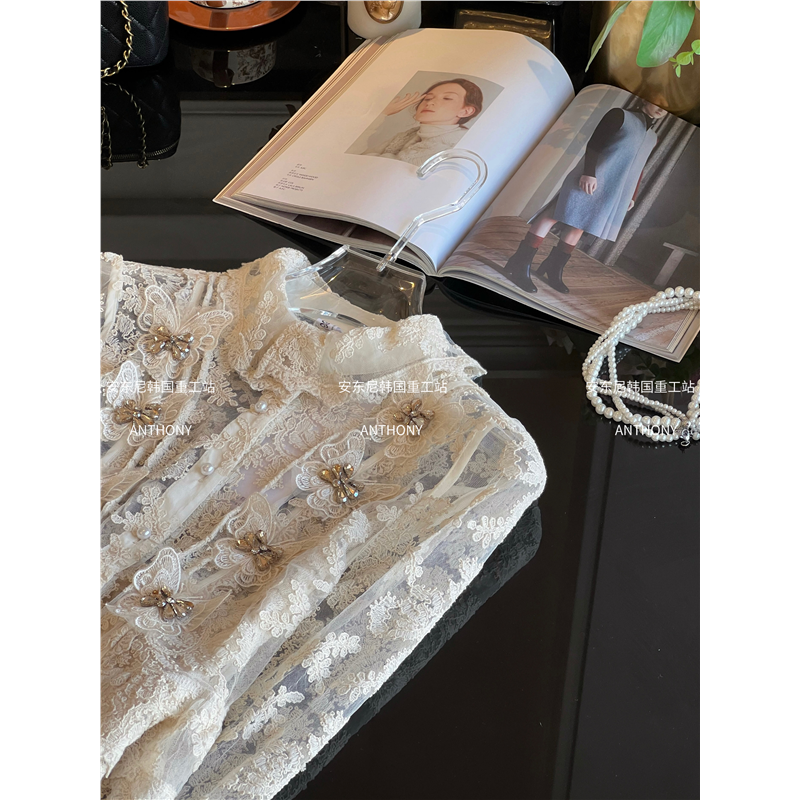 条纹短背心花边衬衣2025新款 商场同款 女冬季 衬衫 两件套 森马长袖