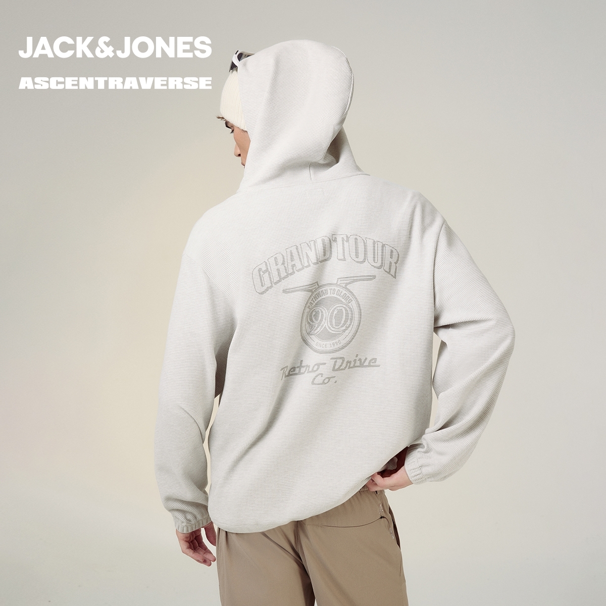 三福2025秋冬男士 街头微落上衣507926 斑驳大字母印花带帽卫衣