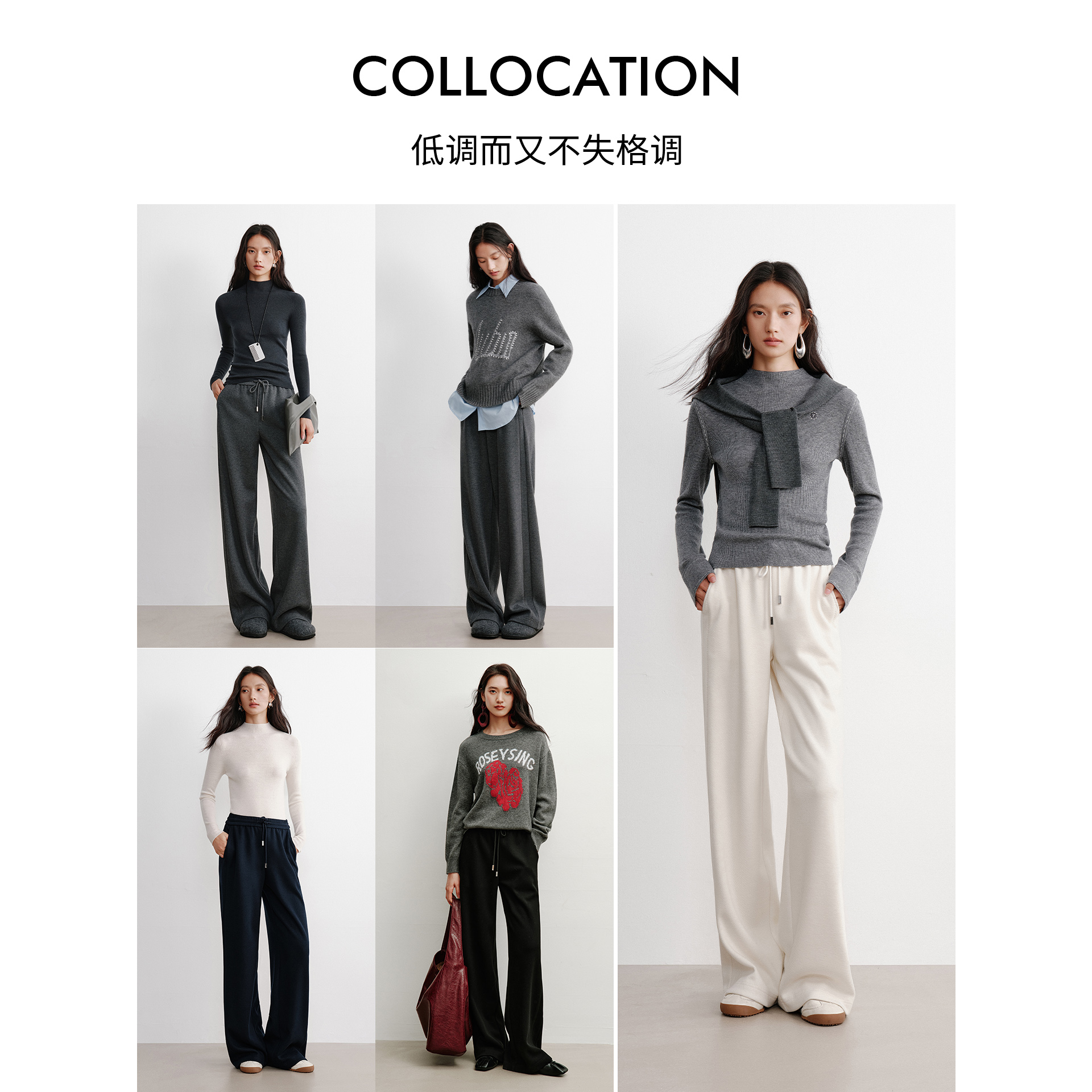 宽松软糯直筒长裤 新款 子 女2025年冬装 衣香丽影醋酸羊毛真丝休闲裤