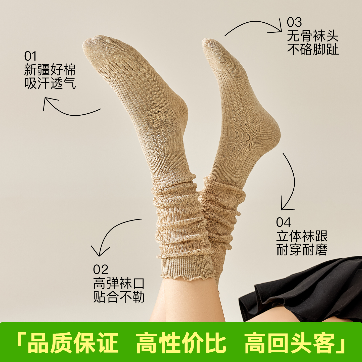 爆款 中筒袜纯棉月子袜2025新款 春秋花边长筒袜 薄款 堆堆袜子女夏季