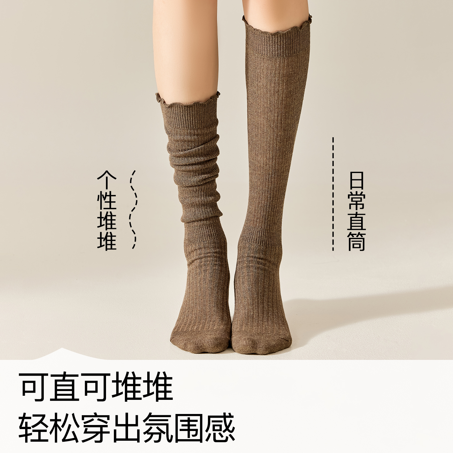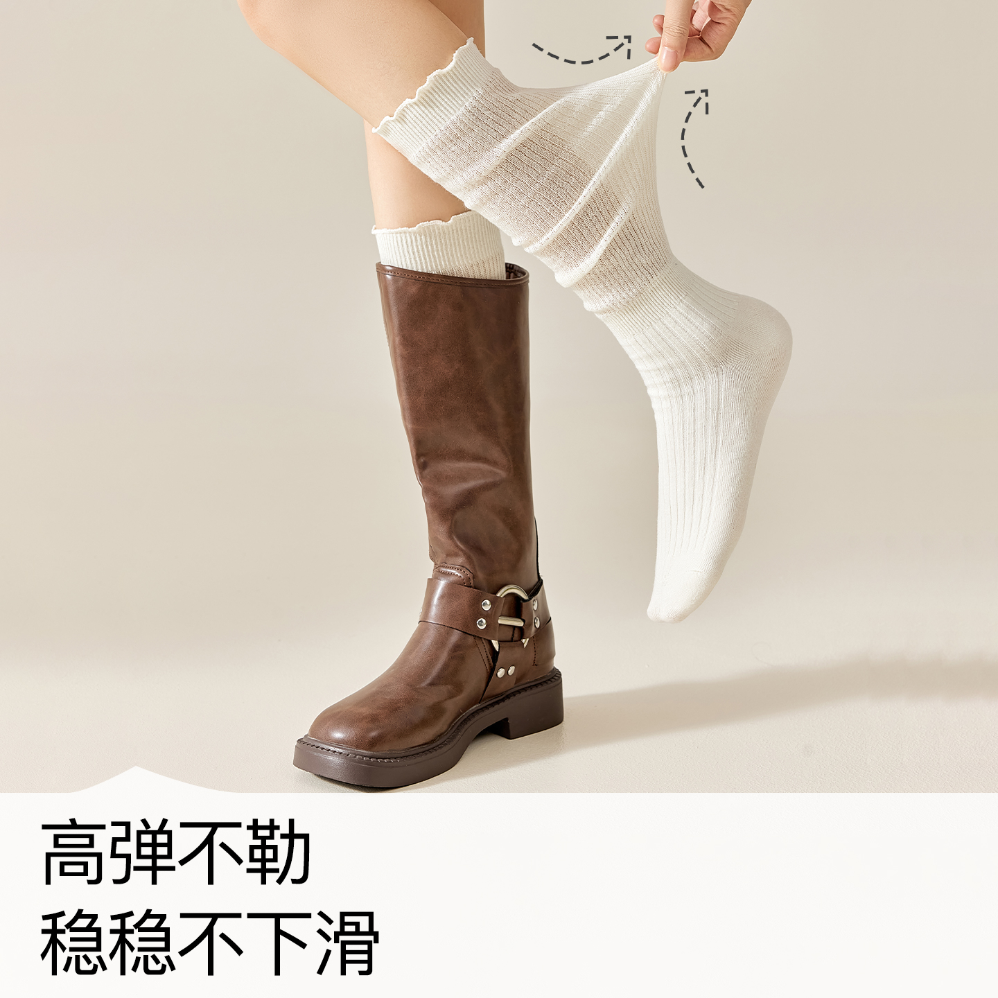 堆堆袜长筒袜女款 长袜子配长靴小腿袜jk白色纯棉靴子春秋高筒棉袜