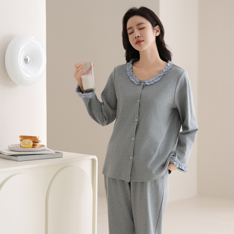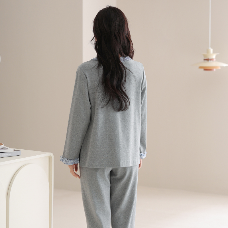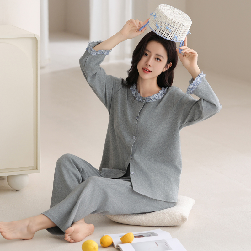 宽松外穿家居服2025年 田园花边圆领大码 芬腾睡衣女春秋款 纯棉长袖
