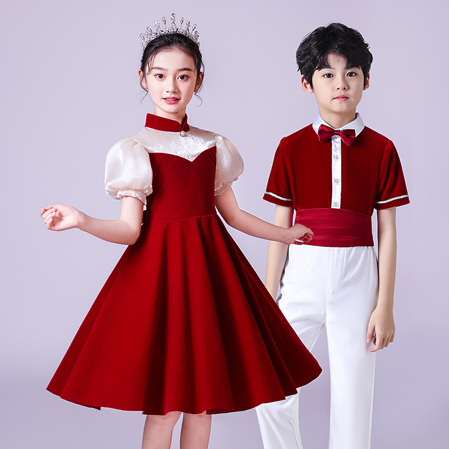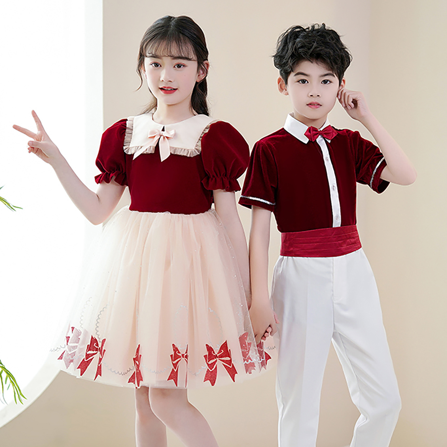 元 旦儿童大合唱演出服中小学生男女童蓬蓬裙诗歌朗诵表演服装