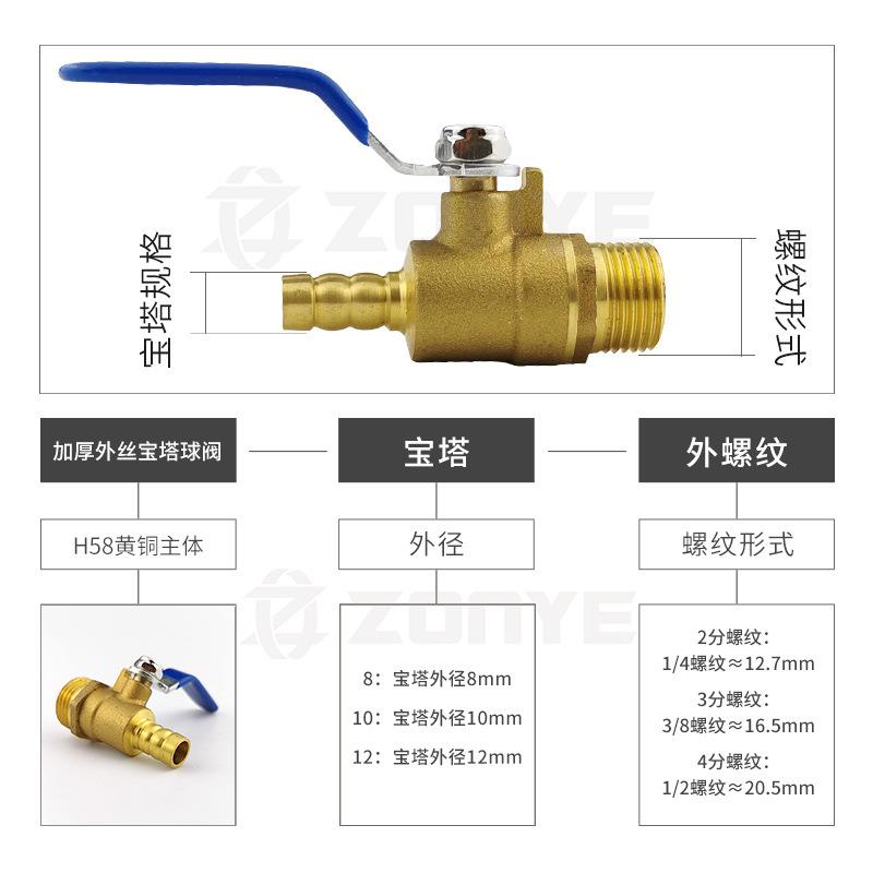 上鸿铜球阀水阀开关2分3分4分6分8分 DN25宝塔转内外螺纹气动球阀
