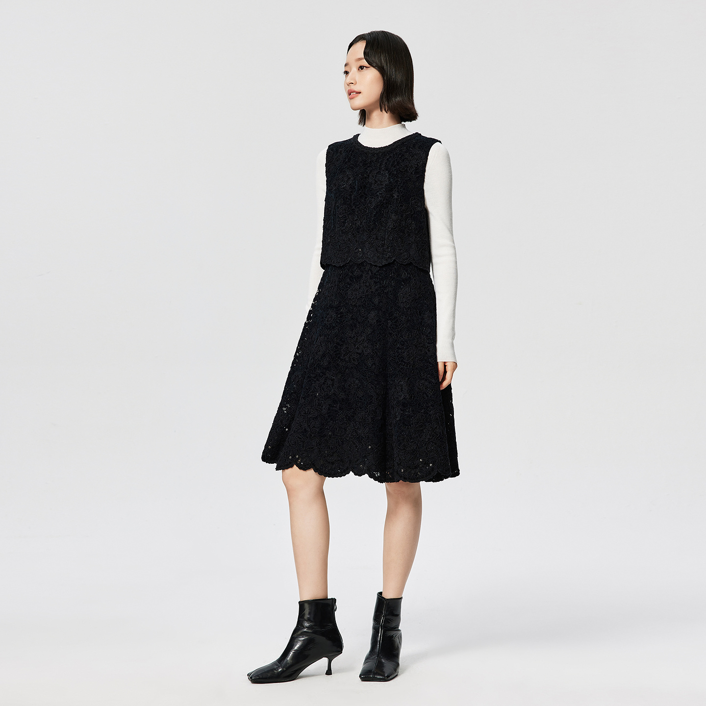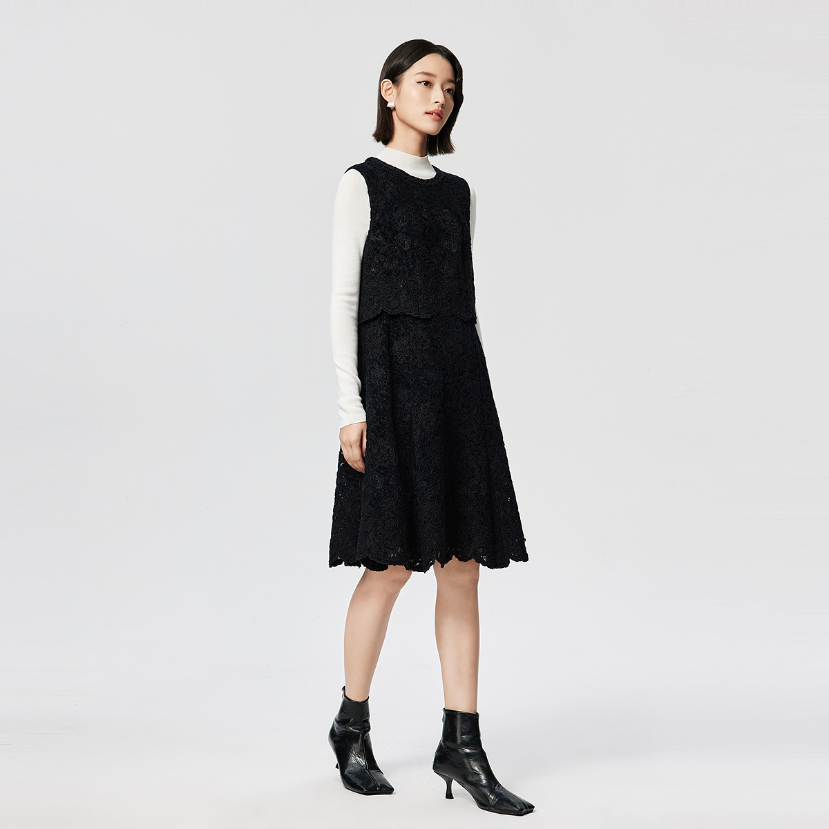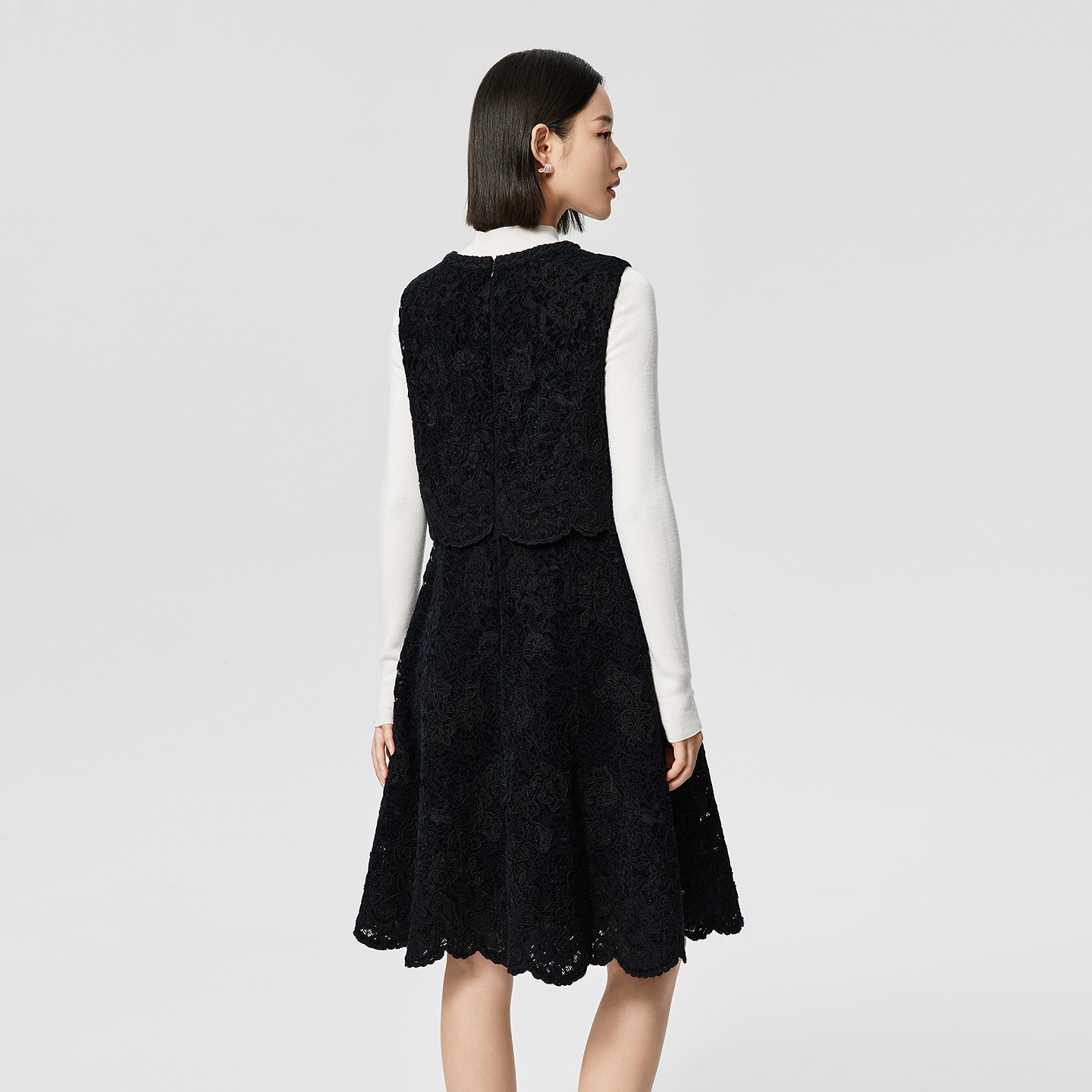 连衣裙 雪尼尔刺绣叠珠片绣股绳蕾丝假两件截断式 VGRASS25冬季 新款
