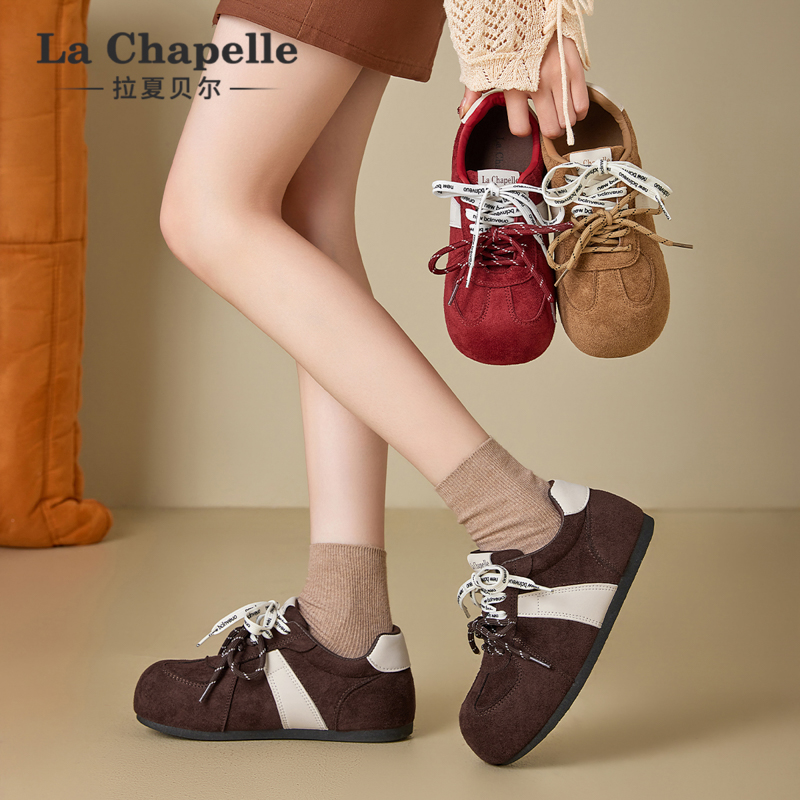 加绒休闲阿甘鞋 张凌赫 新款 百丽彩虹豆红色德训鞋 B1U1D预 董璇同款