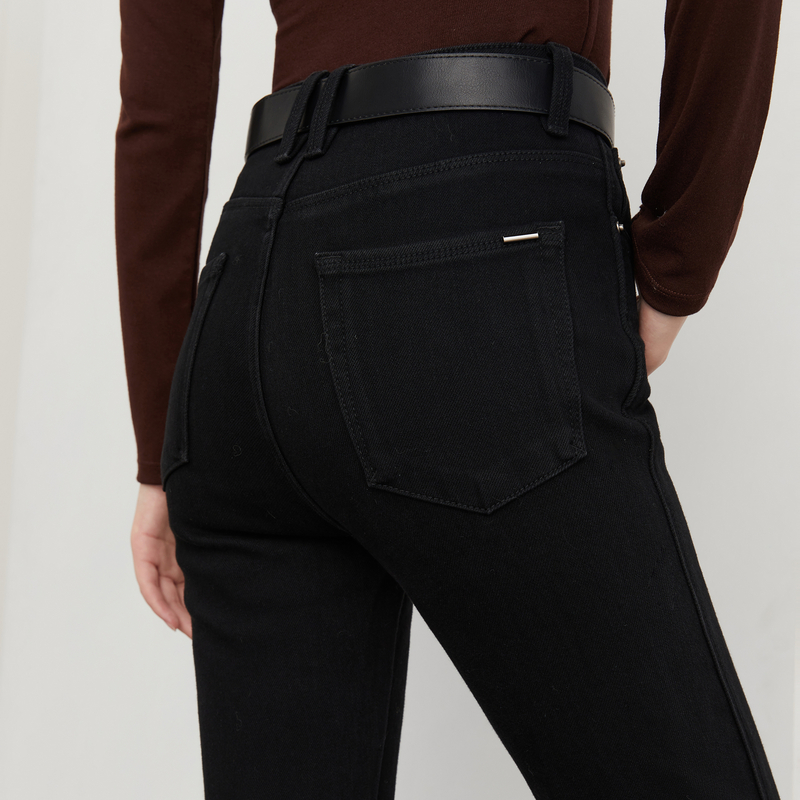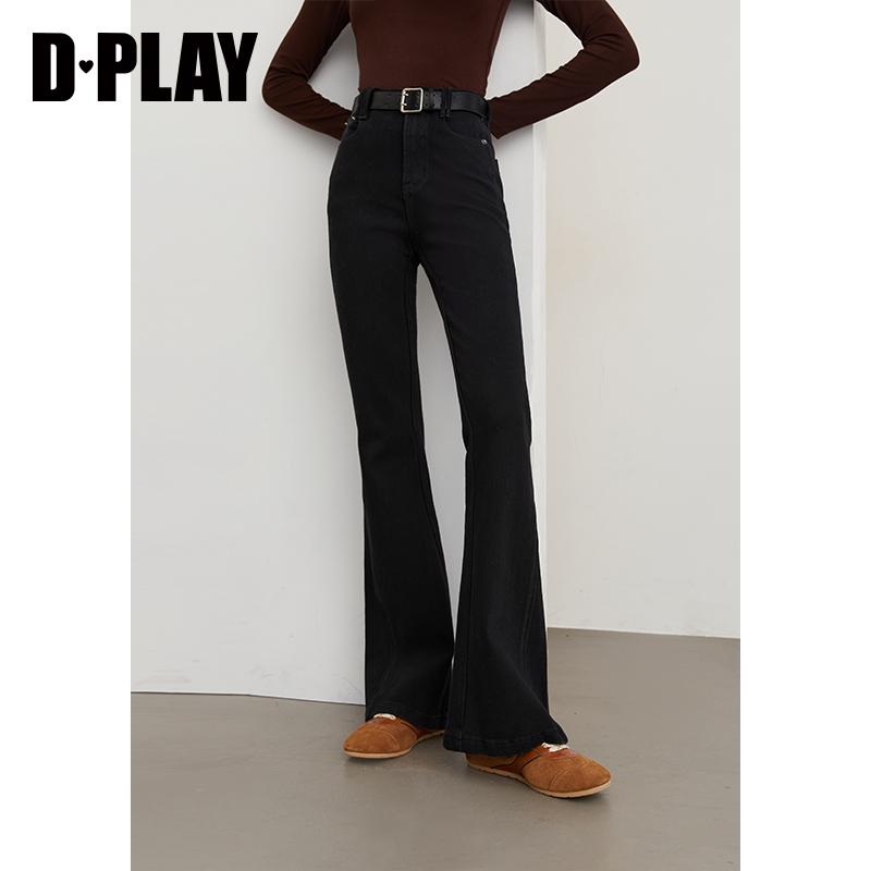 女气质时髦修身 黑色微喇牛仔裤 裤 子长裤 DPLAY2025秋季 喇叭裤 新款