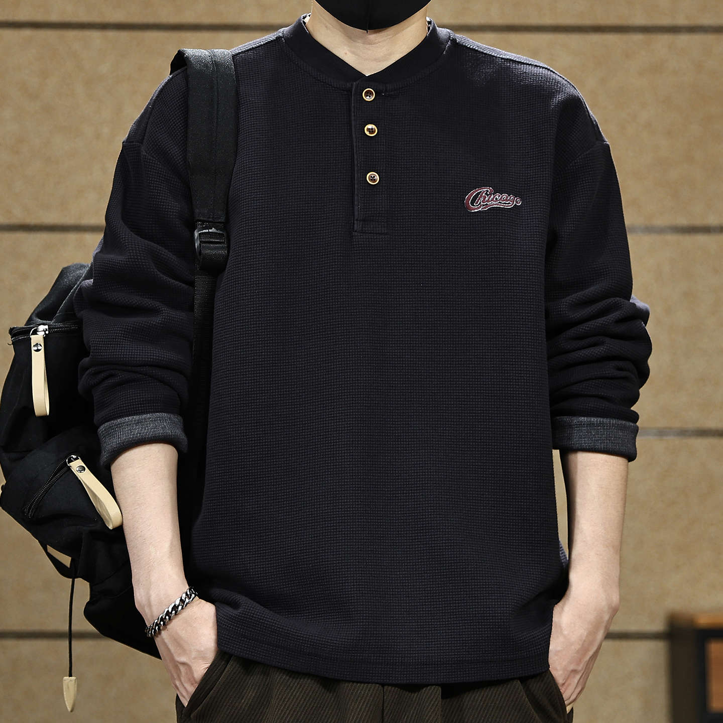 立领半开襟衬衫 25秋新款 领含莫代尔卫衣男 海澜之家曾舜晞同款 HLA