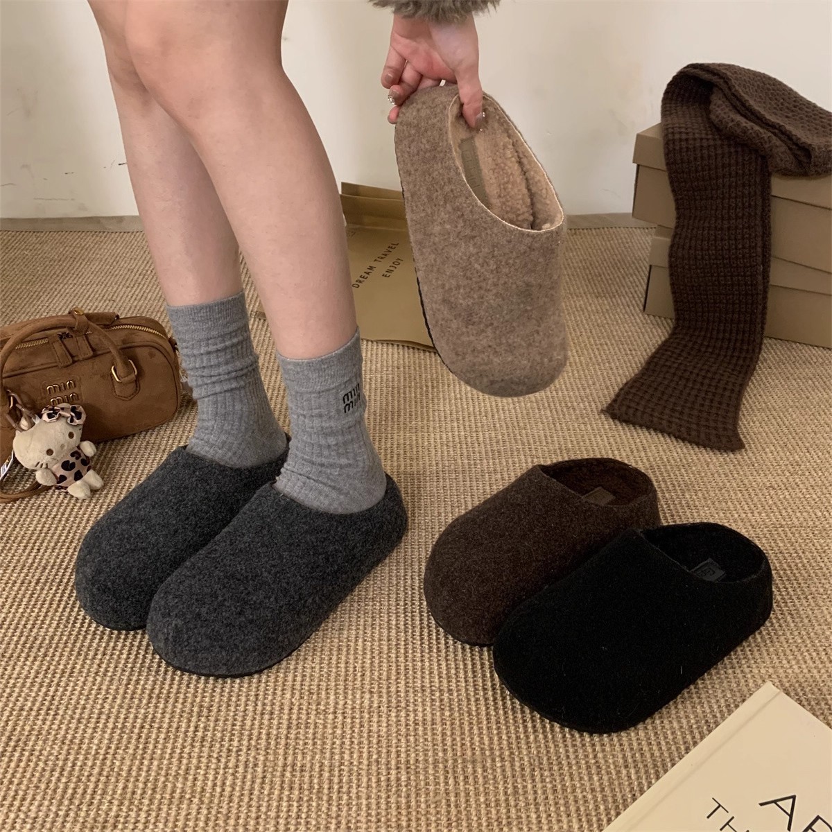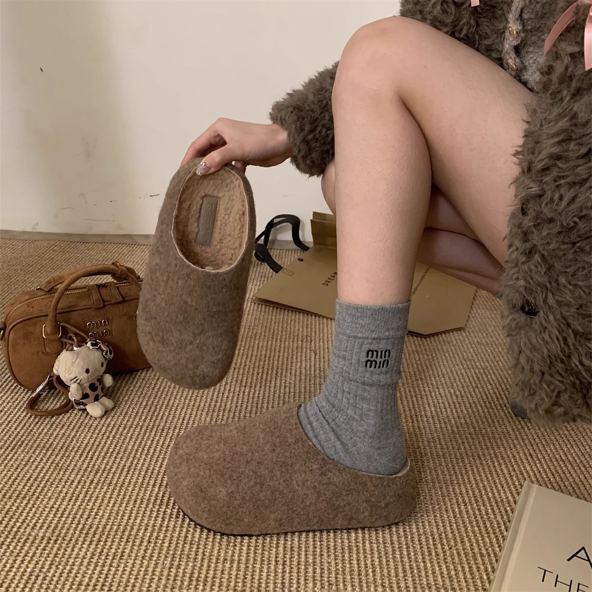 女外穿穆勒鞋 秋冬网红毛毛拖鞋 女2025新款 复古厚底勃肯包头半拖鞋