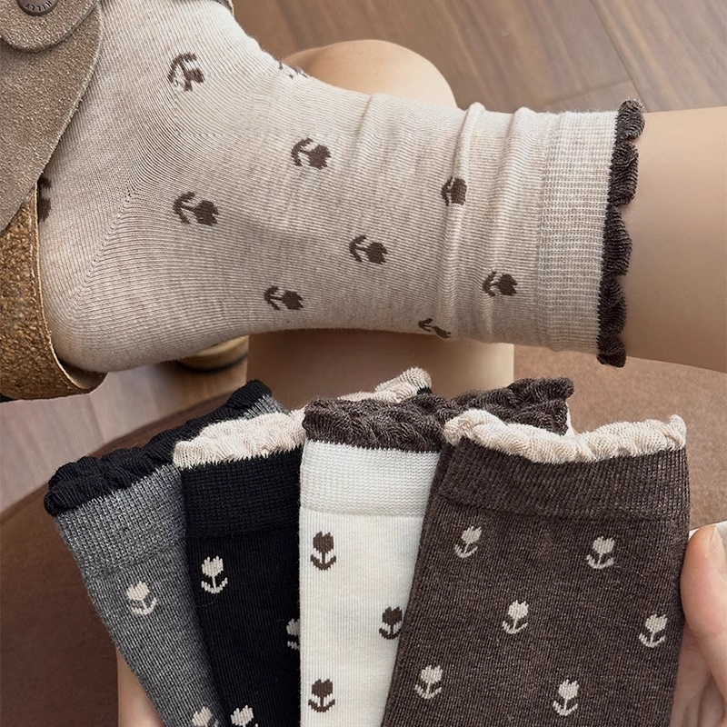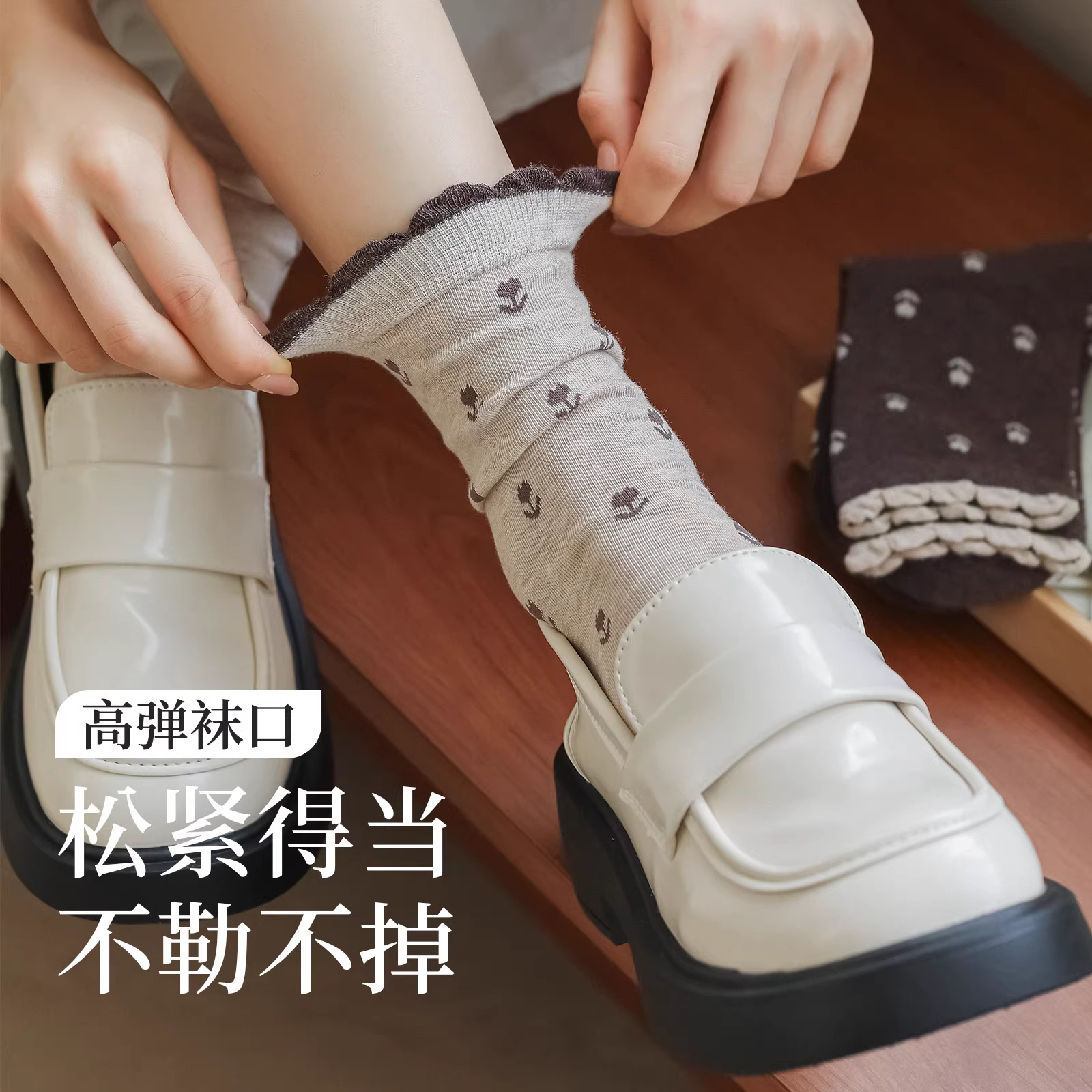 袜子女款 纯棉防臭中筒袜美拉德长筒袜女士加厚保暖堆堆长袜 春秋季