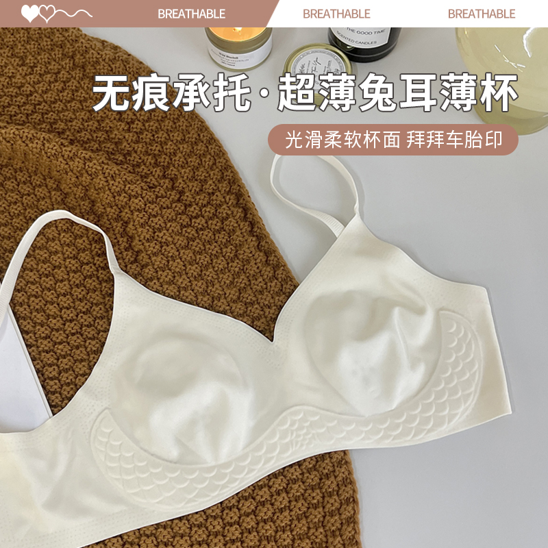 爆款 透气果冻兔耳朵2025新款 文胸罩 夏季 无痕内衣女大胸显小超薄款