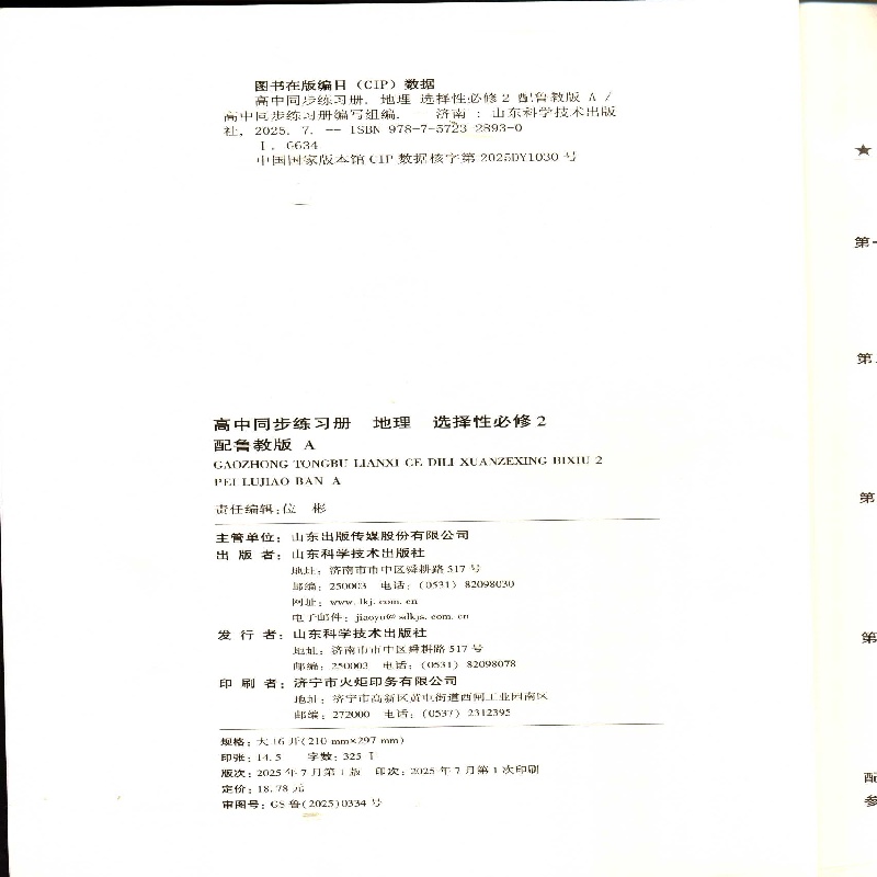 社A版 2025地理选择性必修2二高中同步练习册配鲁教版 山东科学技术出版