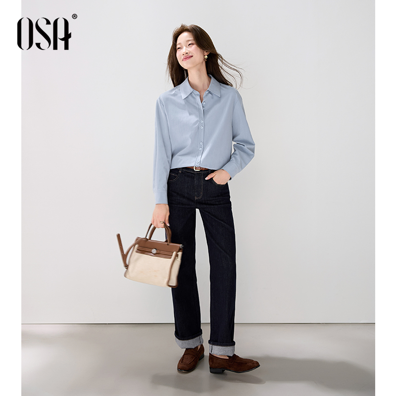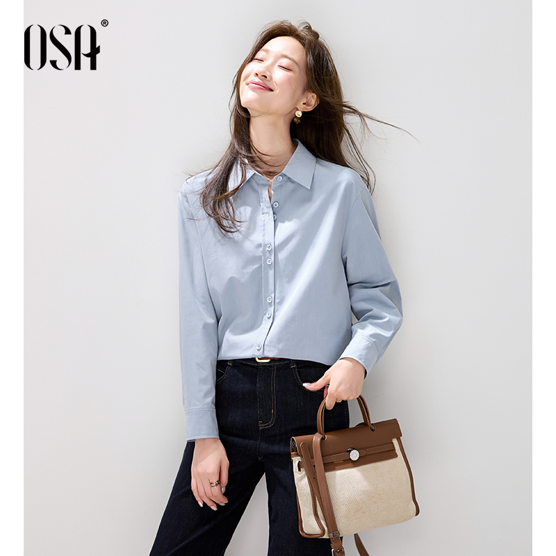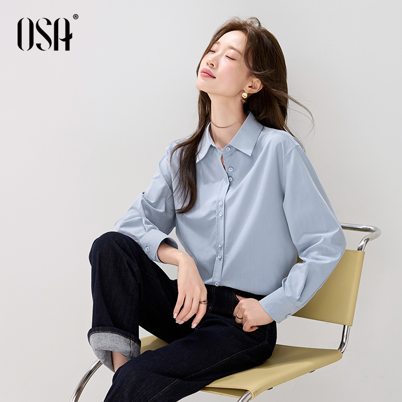 通勤休闲长袖 新款 翻领衬衣上衣 女2025秋季 OSA欧莎高智感磨毛衬衫