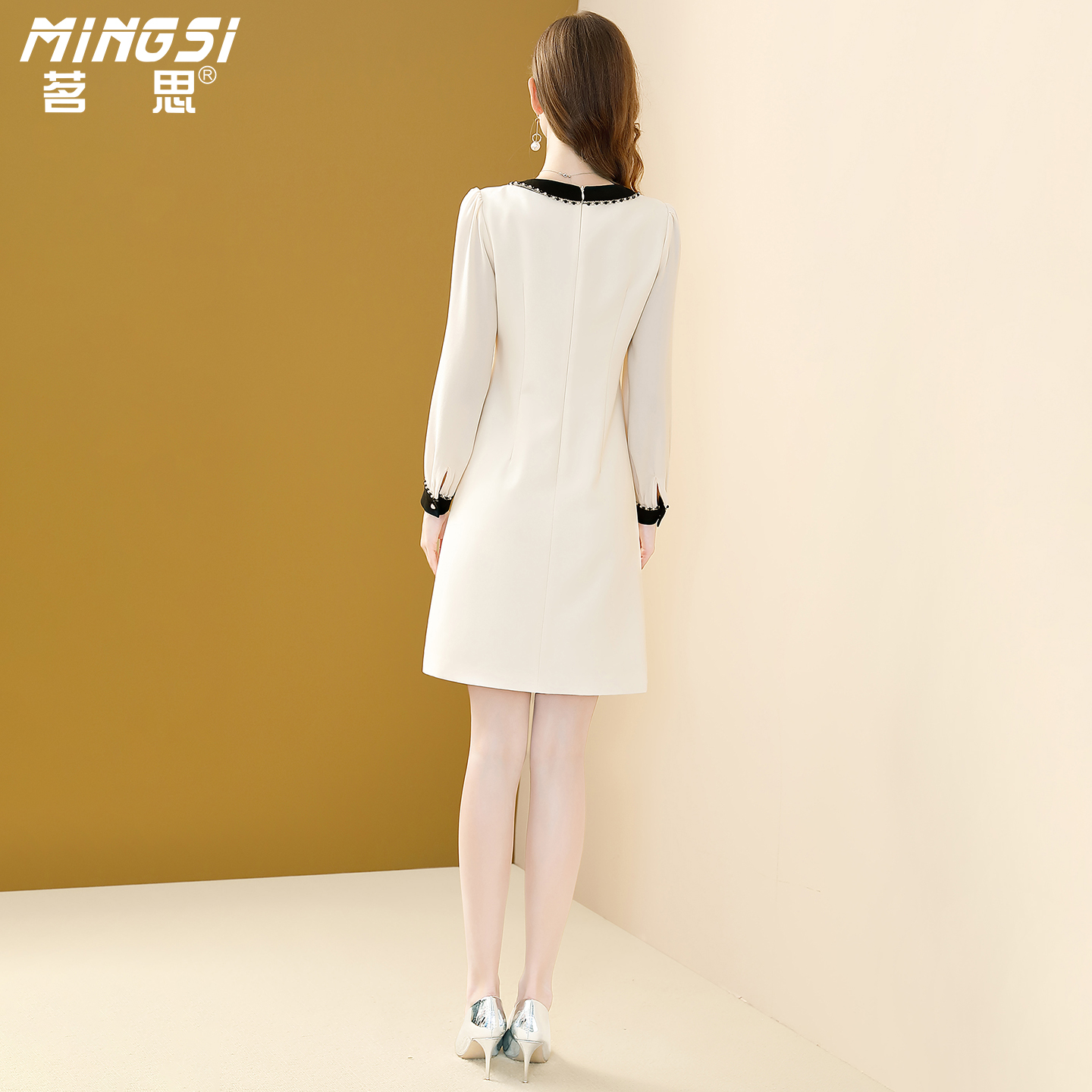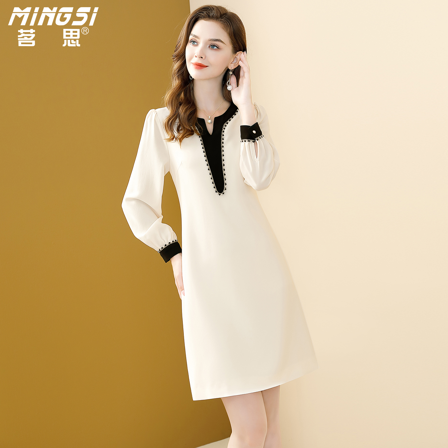 宽松显瘦裙子 小个子钉珠长袖 茗思高级感撞色连衣裙女2025秋季 新款