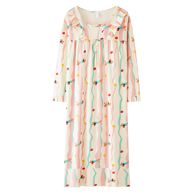 连衣裙 简约条纹睡裙可外穿少女大码 贝妍睡衣女春秋新款 柔软棉长袖