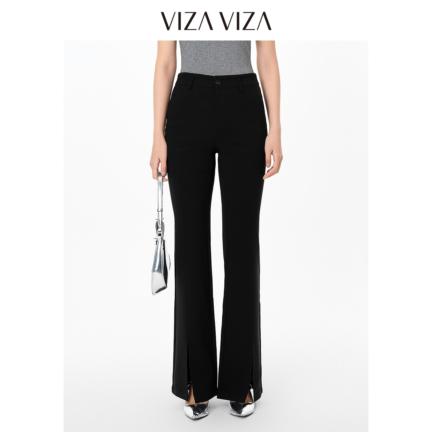 百搭黑色垂感休闲裤 VIZA 通勤气质显瘦微喇裤 新款 女 2025秋季