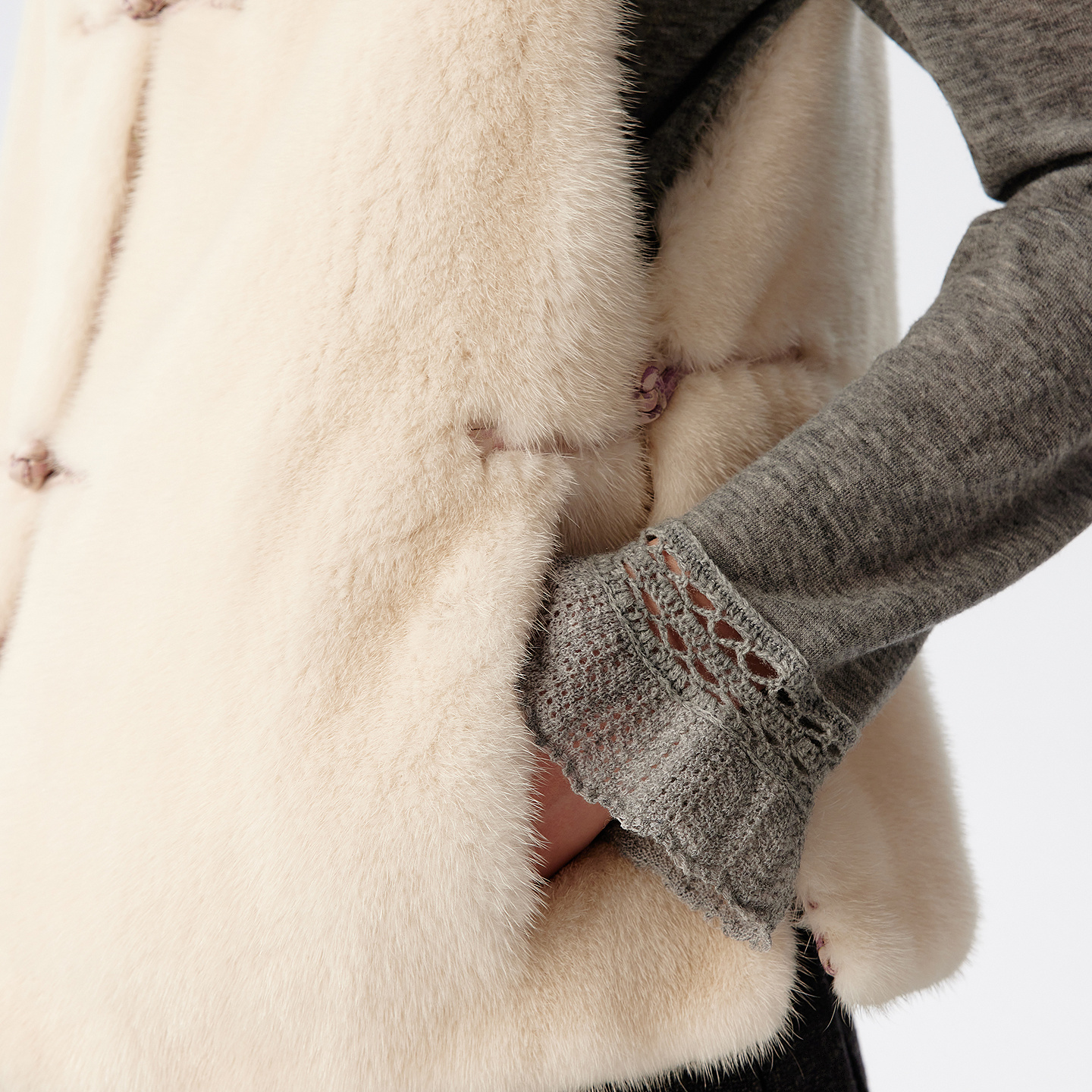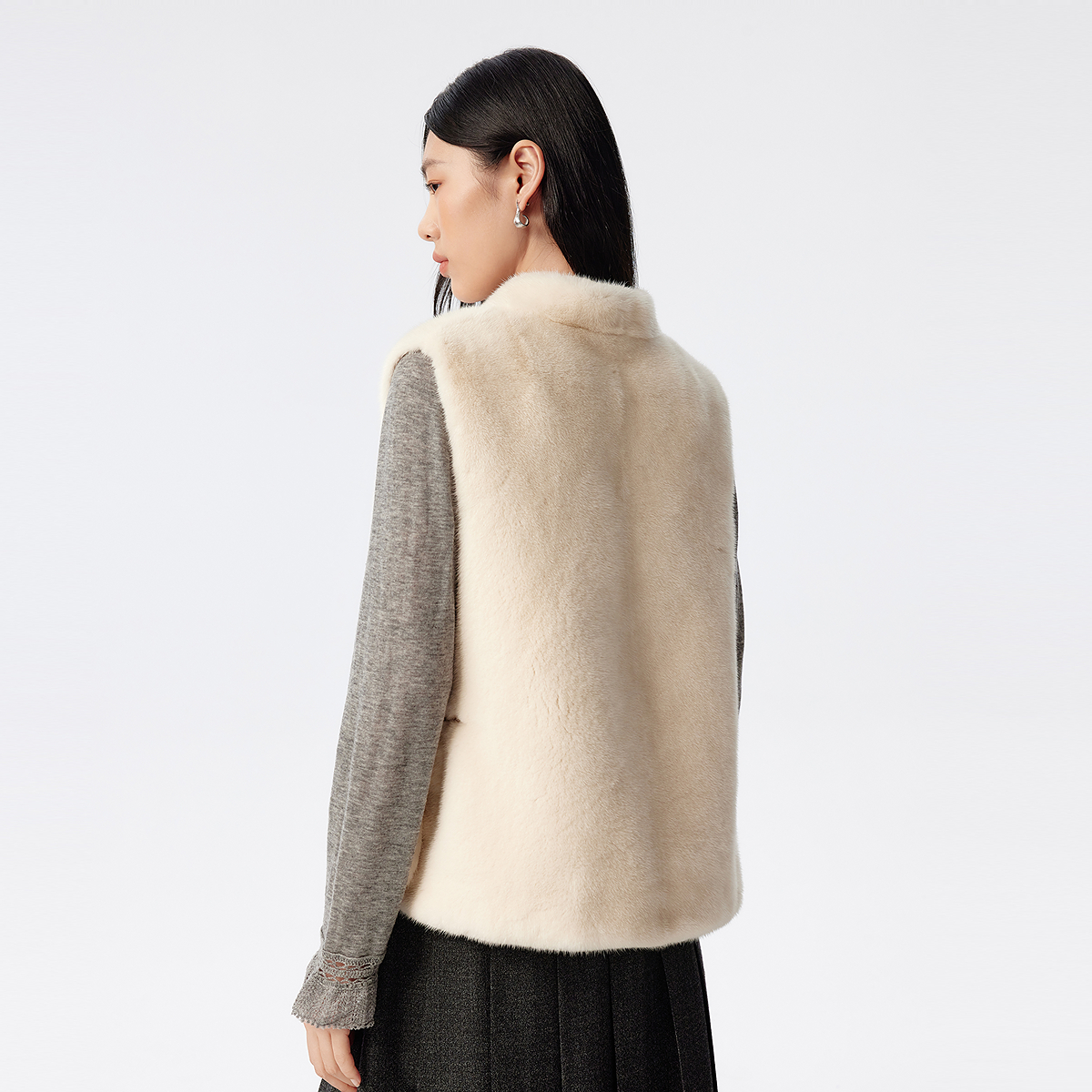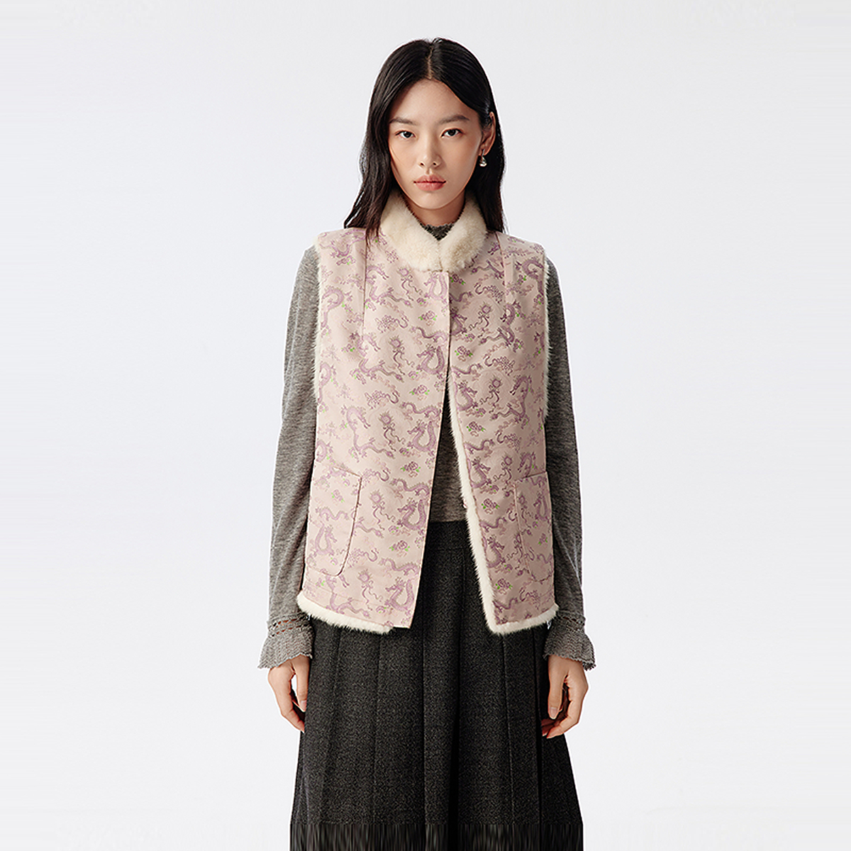 VGRASS25秋冬新款 立领马甲女 水貂毛宋锦双面可穿时髦百搭温暖无袖